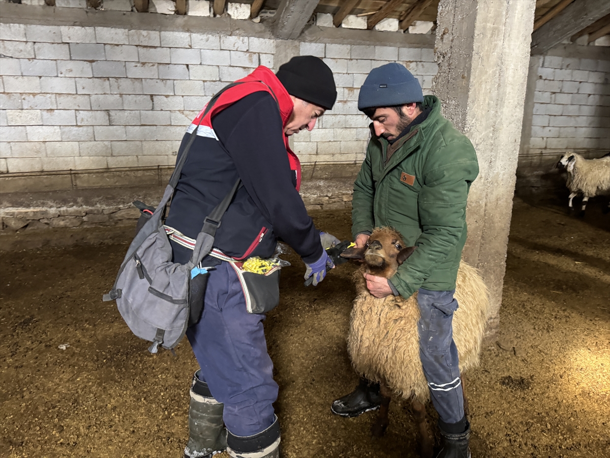 Verimli hayvancılığın yapılabilmesi için soğuk havaya rağmen çalışmalarını sürdüren veterinerler, besicileri de hayvan sağlığı ve hastalıklardan korunma yolları konusunda bilgilendiriyor.
