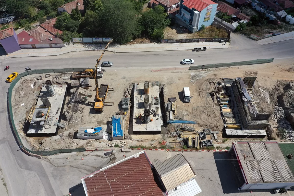 Projenin Edirne kent merkezindeki çalışmaları kapsamında ekipler, viyadük inşasını sürdürüyor.