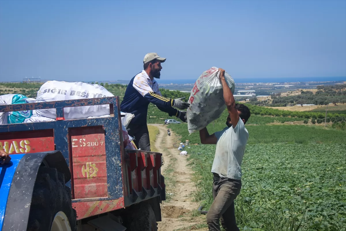 HATAY (AA) – Kahramanmaraş merkezli 6 Şubat'taki depremlerden etkilenen Hatay'ın Arsuz ilçesinde açık alanda yetiştirilen salatalıklar hasat edildi.