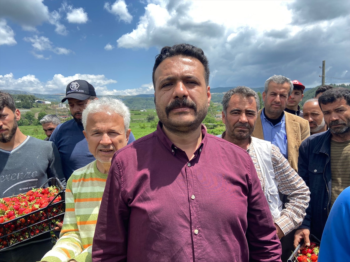 Tutlubahçe Mahallesi'ndeki tarlada bir araya gelen çilek üreticileri, hasada başladıklarını ancak komisyoncuların ürünleri düşük fiyata alması nedeniyle yüzlerinin gülmediğini belirtti.