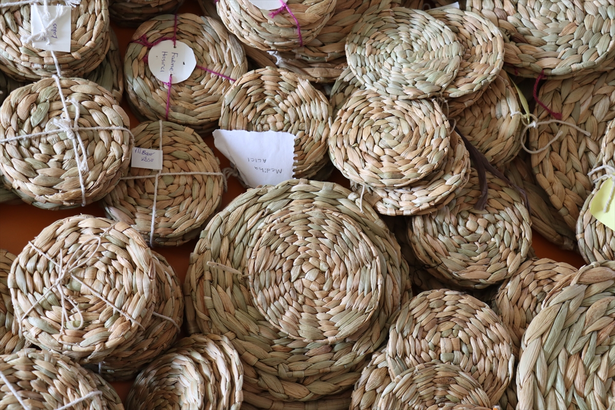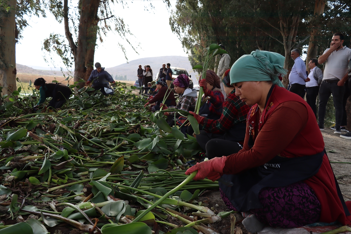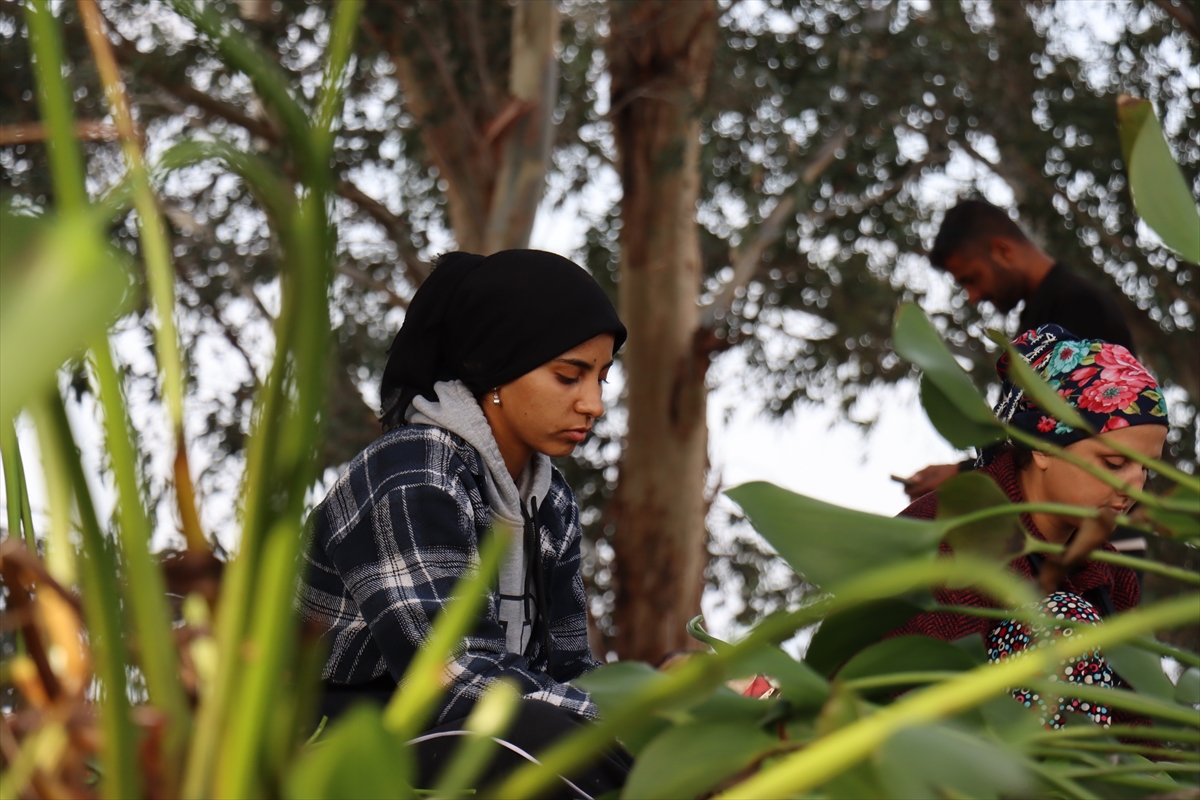 HATAY (AA) – Hatay'ın Kırıkhan ilçesindeki Gölbaşı Gölü'nde ekosisteme zarar veren istilacı su sümbüllerini sepet ve çantaya dönüştüren kadınlar gelir elde ediyor.