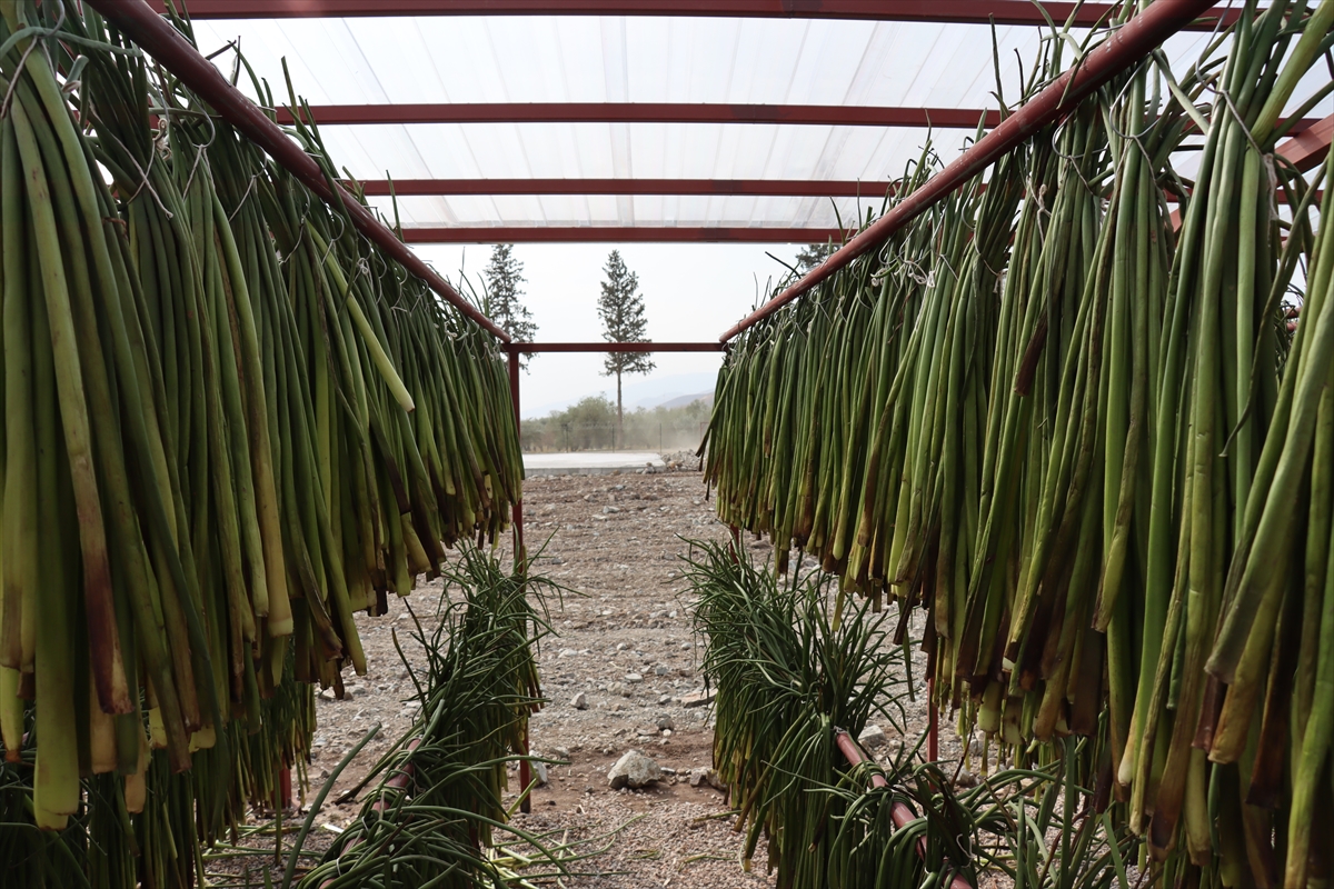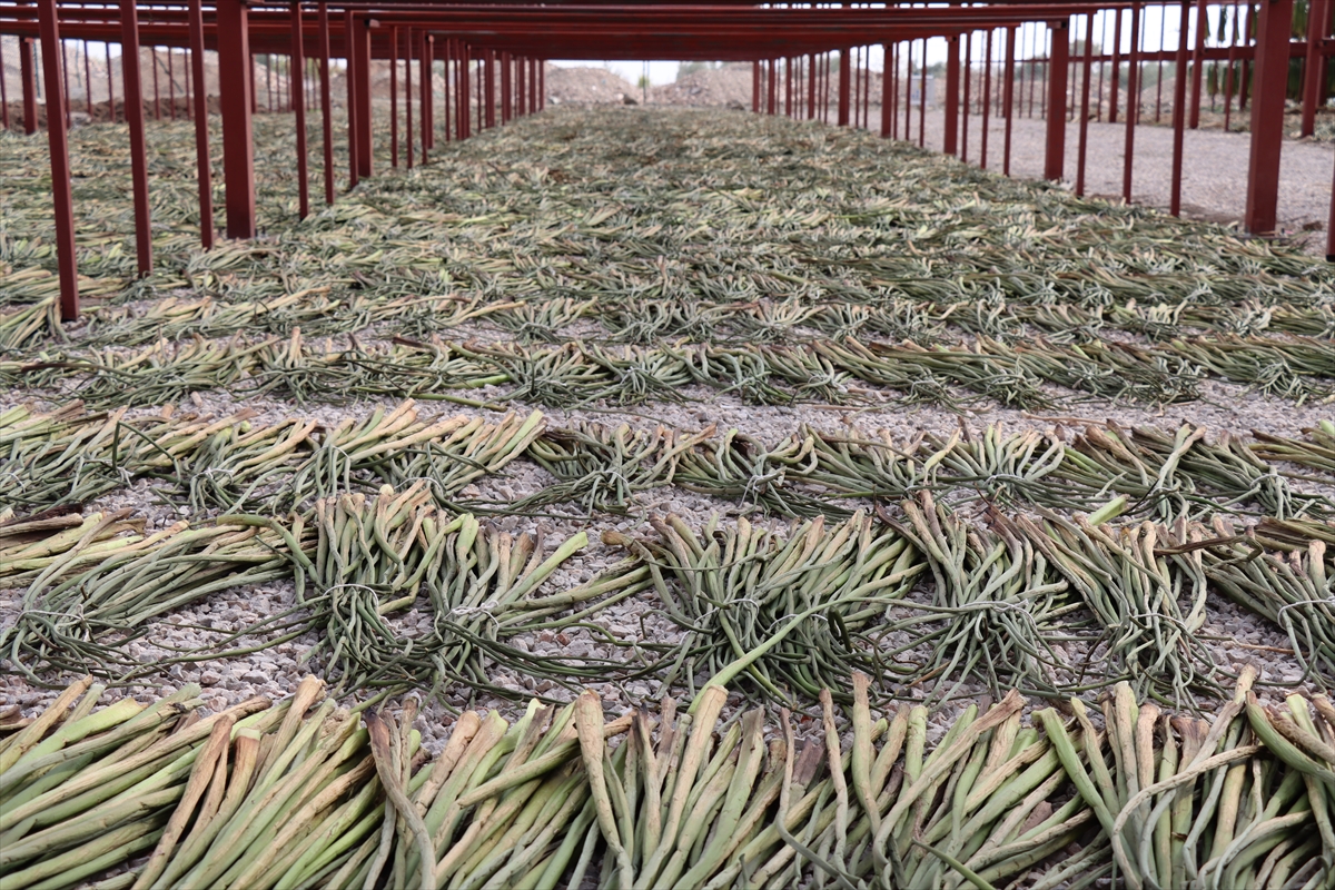 Kadın çalışanlardan 3 çocuk annesi Ayben Açık, AA muhabirine, arkadaşlarının temizlediği sümbülleri bağ yapıp kurutmak üzere serdiğini söyledi.