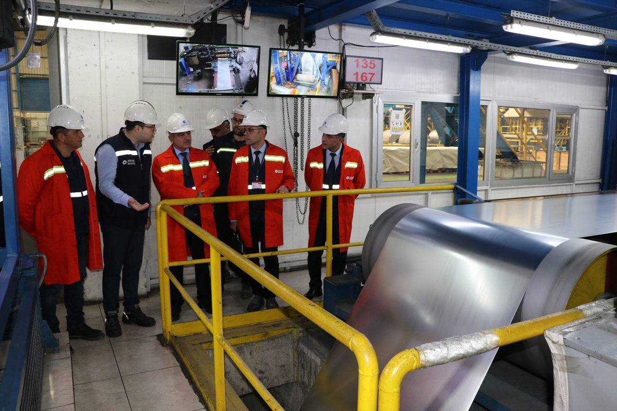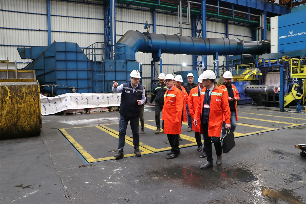 Çevre, Şehircilik ve İklim Değişikliği Bakanlığı Mesleki Hizmetler Genel Müdür Yardımcısı Atila Erenler ve Genel Müdürlük Piyasa Gözetimi ve Denetimi Şube Müdürü Tamer Erakman'ın katıldığı denetimde üretilen yassı çelik ürünlerinden numuneler alındı.