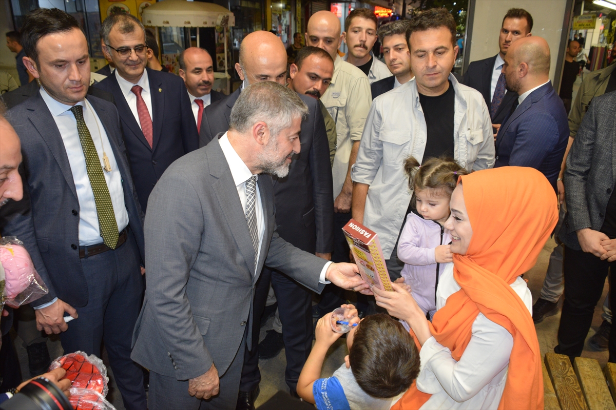 Gülistan Caddesi'nde esnafı da ziyaret eden Nebati, esnafla sohbet etti, çocuklara oyuncak hediye etti.