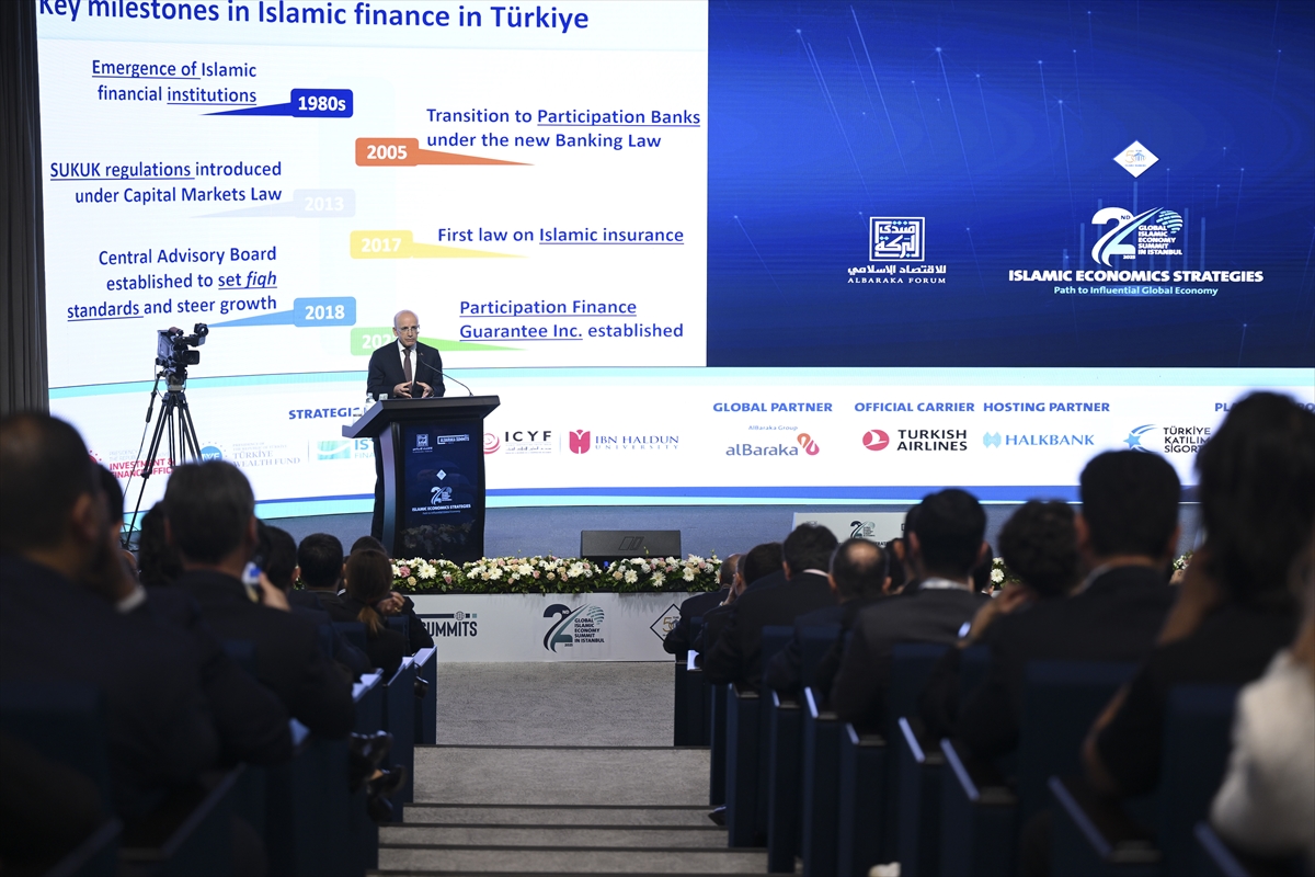 Şimşek, AlBaraka İslam Ekonomisi Forumu tarafından, "Türkiye AlBaraka Zirveleri" kapsamında düzenlenen "2. İstanbul Dünya İslam Ekonomisi Zirvesi"ndeki konuşmasında zirvenin sektör için önemine dikkati çekti.