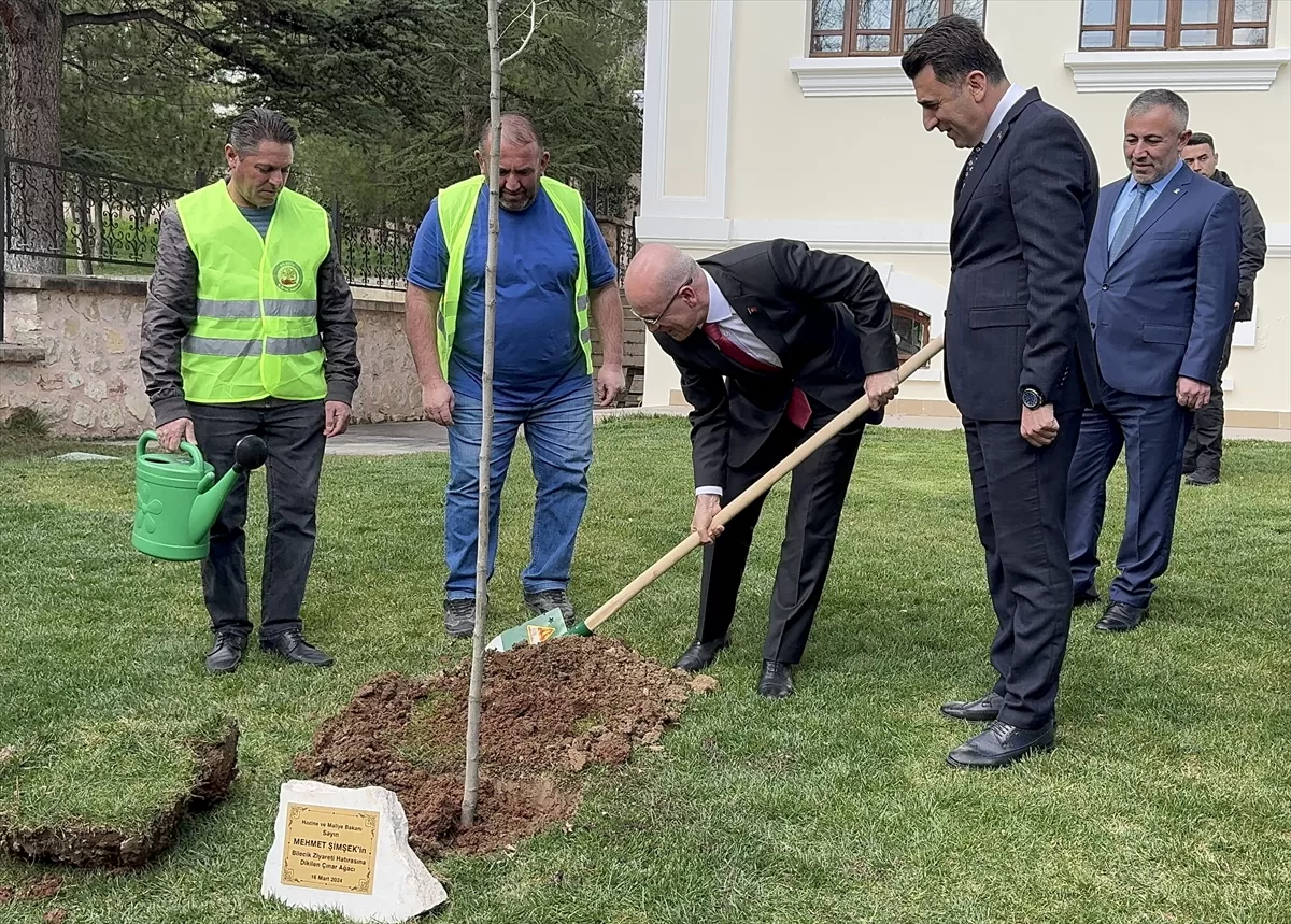 Valilik binası önünde Vali Şefik Aygöl ile beraberindekiler tarafından karşılanan Bakan Şimşek, kurumun bahçesine çınar ağacı dikerek can suyu verdi.