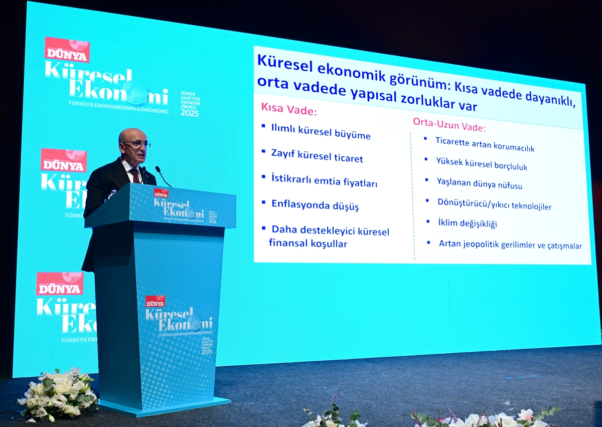 Küresel finansal koşulların Türkiye ve benzeri ekonomileri daha destekleyici bir noktada olduğunu dile getiren Şimşek, uzun vadede hem fırsatların hem de yapısal zorlukların bulunduğunu anlattı.