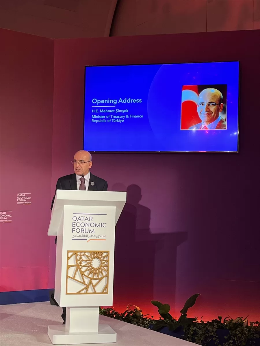 DOHA (AA) – Hazine ve Maliye Bakanı Mehmet Şimşek, yapısal dönüşüm ve fiyat istikrarına yönelik atılan adımlarla sürdürülebilir yüksek büyümeyi, verimliliği ve rekabet gücünü artırmayı hedeflediklerini söyledi.