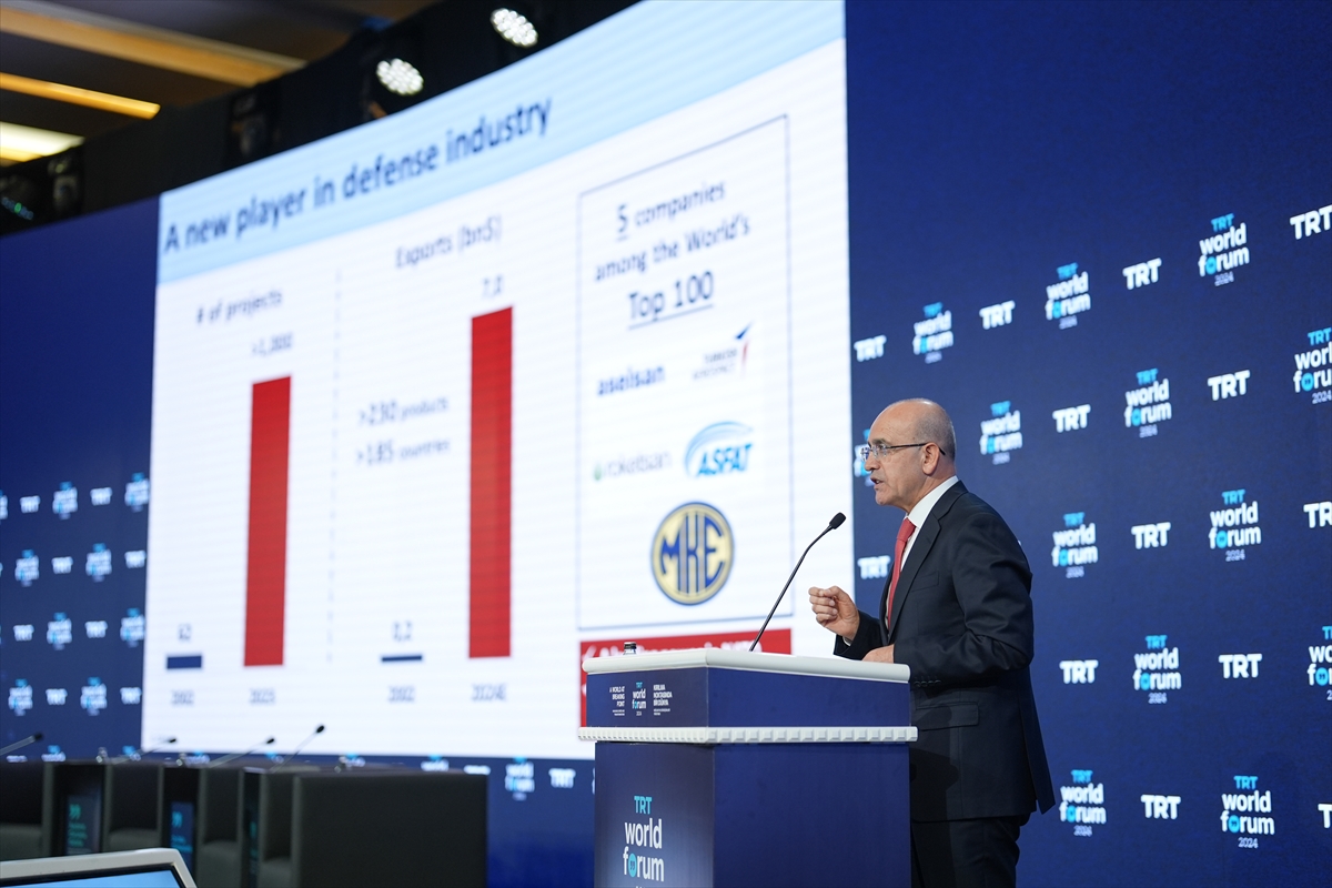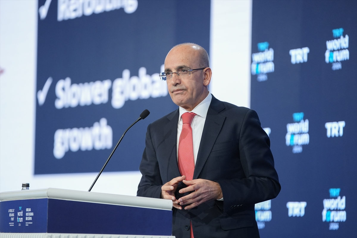 Şimşek, TRT'nin bu yıl 8'incisini düzenlediği TRT World Forum 2024'ün kapanış oturumu olan "Küresel Ekonomik Belirsizliğin Ele Alınması: Dayanıklılık Stratejileri" başlıklı panelin açılışında konuştu.