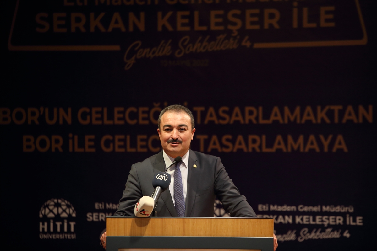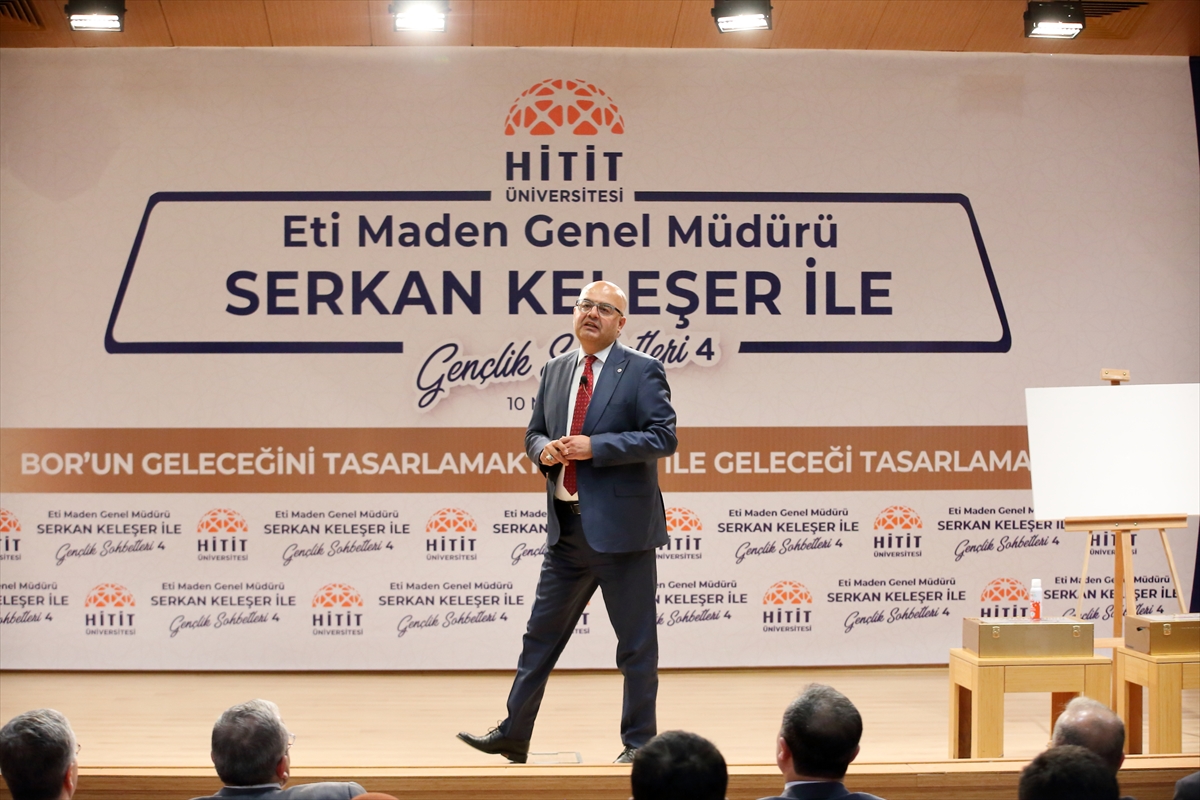 Keleşer, Hitit Üniversitesi Meslek Yüksekokulları Kampüsü Ethem Erkoç Konferans Salonu'nda düzenlenen gençlik sohbetleri toplantısında, "Borun Geleceğini Tasarlamaktan Bor ile Geleceği Tasarlamaya" başlıklı bir sunum yaptı.
