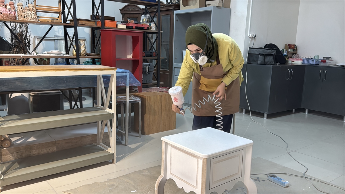 Duman, yaklaşık 5 yıldır işletmesinde yaptığı ahşap boyama, eski eşyaları yenileme, tasarım ve dönüşüm çalışmalarıyla hem ev ekonomisine katkıda bulunuyor hem de kişiye özel ürünlerle insanların hayallerini gerçekleştiriyor.