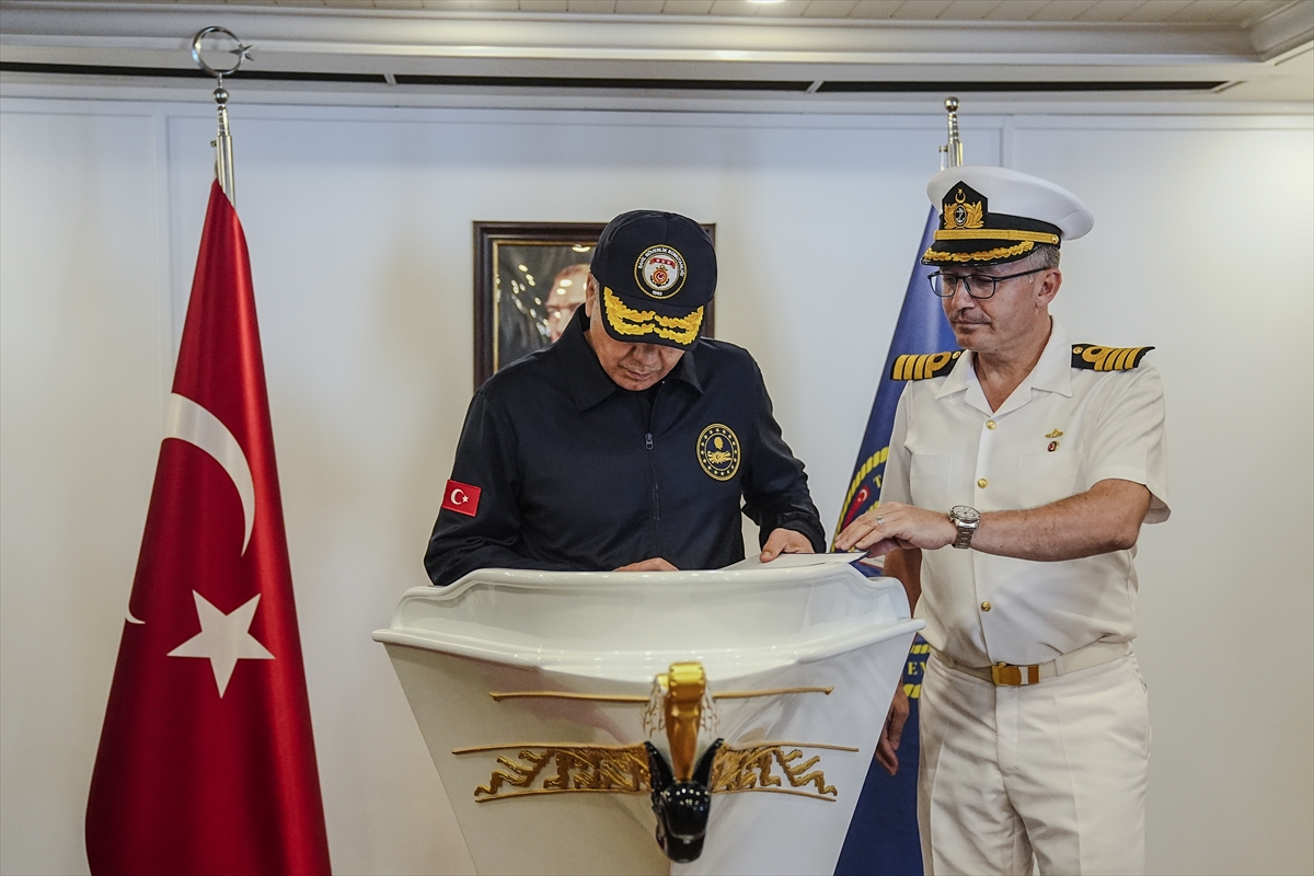 Savarona Yatı'nda yatın tarihine dair bilgi alan Yerlikaya, daha sonra Türk donanmasının öne çıkan gemilerinden TCG Nusret'i ziyaret etti.