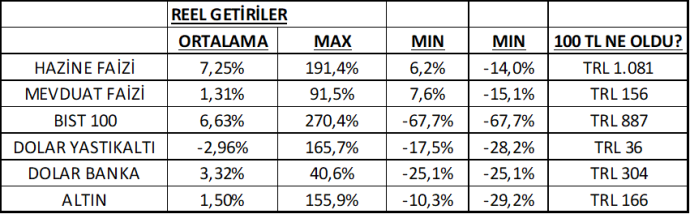 SADECE ALTIN VE DOLAR REEL GETİRİ ÜRETTİ