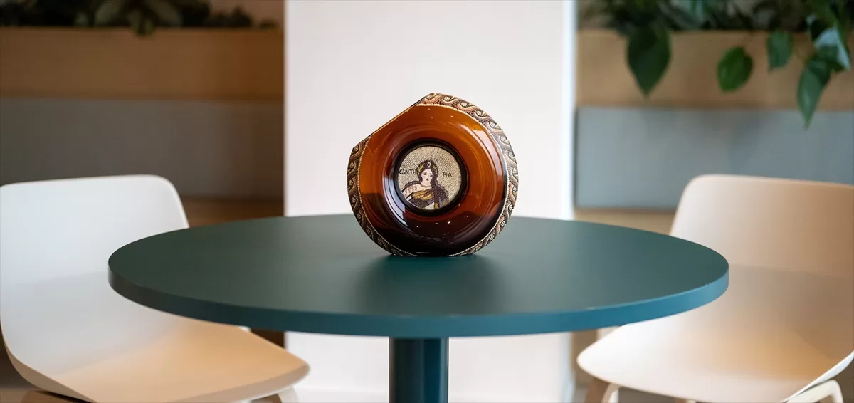 Açıklamada, hediye edilen vazonun kehribar camından yapıldığı ve Soteria mozaiğinin resmedildiği her karenin el boyaması olduğu belirtildi.
