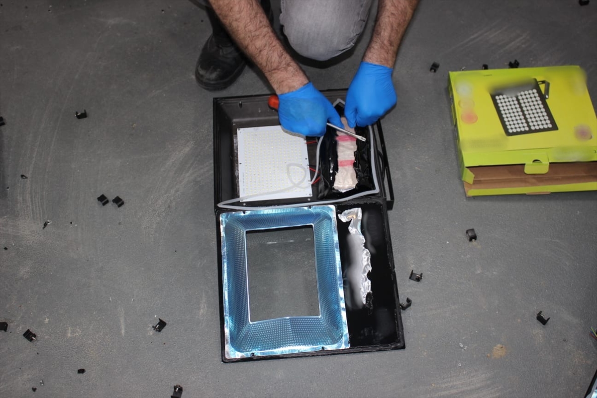 X-ray taramasından geçirilen tırda şüpheli yoğunluklar bulunduğu tespit edildi. Araç arama hangarına alınarak ayrıntılı incelenirken, yasal yük olan projektör kutularının, kontrollerde fark edilmemesi amacıyla benzer ağırlık ve yoğunluğa sahip olacak şekilde farklı bir yükle doldurulduğu anlaşıldı.