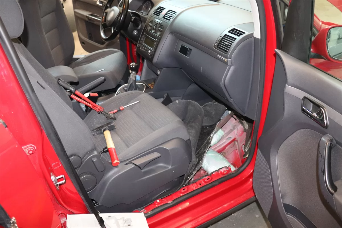 Çeşitli yerlerinde şüpheli yoğunlukların tespit edilmesi üzerine araç arama hangarına aldı. Dedektör köpeğin de tepki vermesi üzerine yapılan detaylı aramada aracın ön ve arka zeminleriyle bagaj havuzundaki zula ortaya çıkarıldı. Zula içerisine gizlenmiş çok sayıda paket çıkartılarak, paketlerden numune alındı. Numunelerin uyuşturucu madde test kiti ile yapılan ön analizi sonucunda skunk cinsi uyuşturucu madde olduğu tespit edildi. Yapılan sayım neticesinde toplam 79 kilogram uyuşturucu maddeye el konuldu.