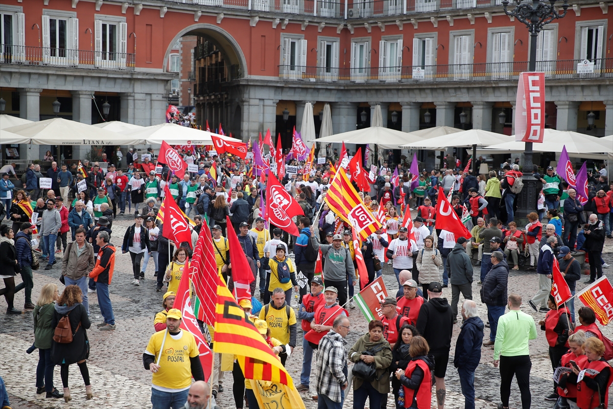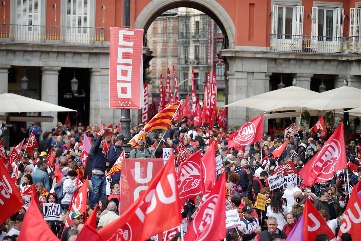 MADRİD (AA) – İspanya'nın iki büyük işçi sendikası, Rusya-Ukrayna Savaşı'yla başlayan yüksek enflasyon ve hayat pahalılığına karşı satın alma gücünü koruyacak şekilde maaş artışı talebiyle Madrid'de gösteri düzenledi.