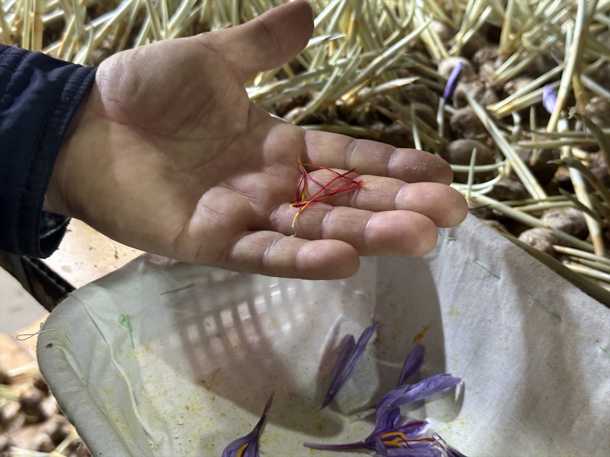 "Safran kışın yağan yağmurlarla yetinebilen bir bitki. Hasadımızı da mayıs-haziran aylarında yapacağımız için hiç sulamadan hasadımızı gerçekleştirmiş olacağız. Safranın iç pazarda da bir sorunu yok. Şu an mahsullerimizi çoktan sattık. Serada da ayrıca salep, beyaz zambak, kara nergis ve kültür mantarı da yetiştiriyoruz. Bölgemizde elma üretimi artık zorlaştığı için elmaya alternatif olarak bu bitkileri tercih ettik. Şu an kapalı alanda topraksız yetiştirdiğimiz 40 bin safran kökümüz var. Bunları yeni köklerin üremesi için toprakla buluşturduk."