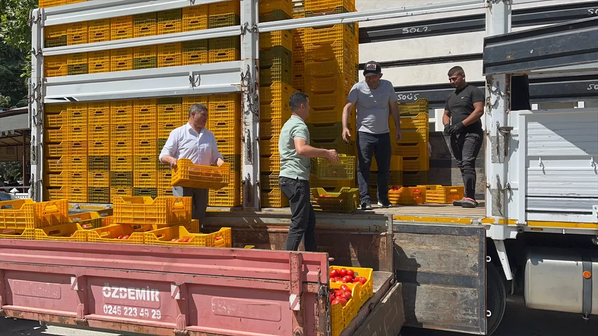 Deregümü Köyü Muhtarı Ali Toprakçı, AA muhabirine, köyde domates hasadına başlandığını söyledi.
