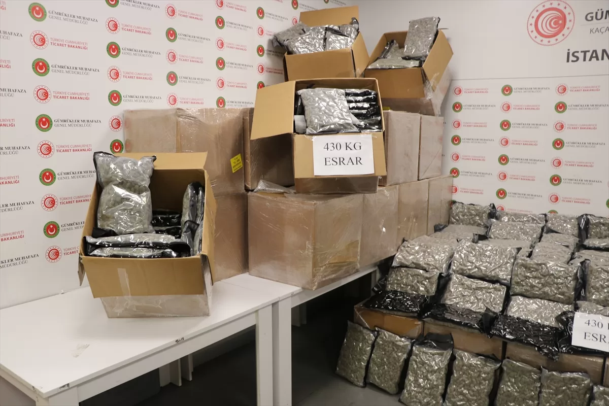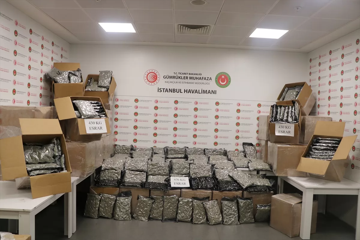 Bakanlıktan yapılan açıklamaya göre, İstanbul Havalimanı Gümrük Muhafaza Kaçakçılık ve İstihbarat Müdürlüğü NARKOKİM birimlerince gerçekleştirilen risk analizi çalışmaları kapsamında, yurt dışından gelen ve transit olarak bir Avrupa ülkesine gönderilmek istenilen hava kargo gönderisi şüpheli bulunarak incelemeye alındı. Yapılan detaylı aramada, narkotik dedektör köpekler de kolilere tepki verdi. Bunun üzerine ekiplerce açılan kolilerin içinde 430 kilogram esrar cinsi uyuşturucu bulundu.