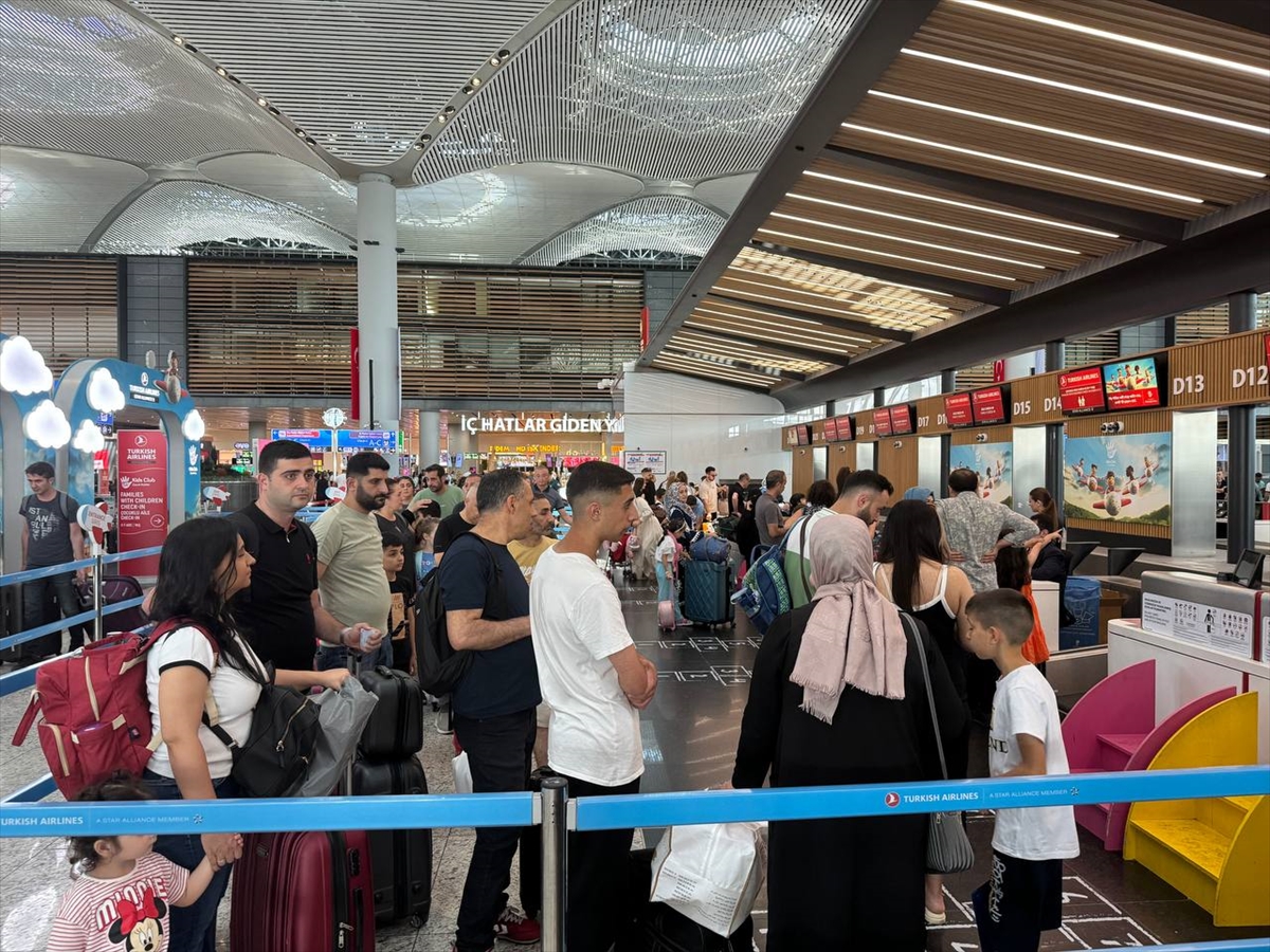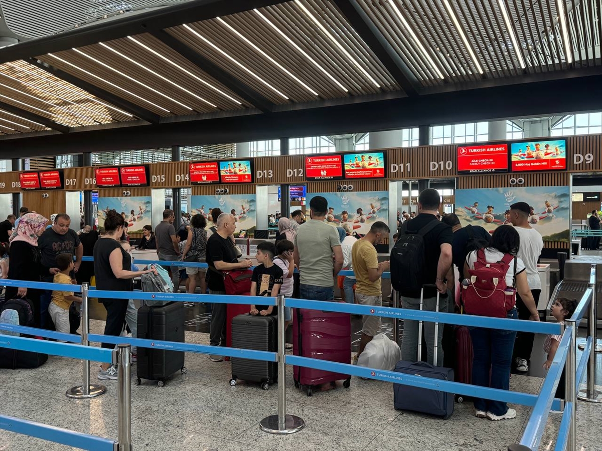 İSTANBUL (AA) – Yaz sezonunun başlangıcının bu yıl Kurban Bayramı tatiliyle birleşmesi nedeniyle İstanbul Havalimanı'nda yolcu yoğunluğu devam ediyor.