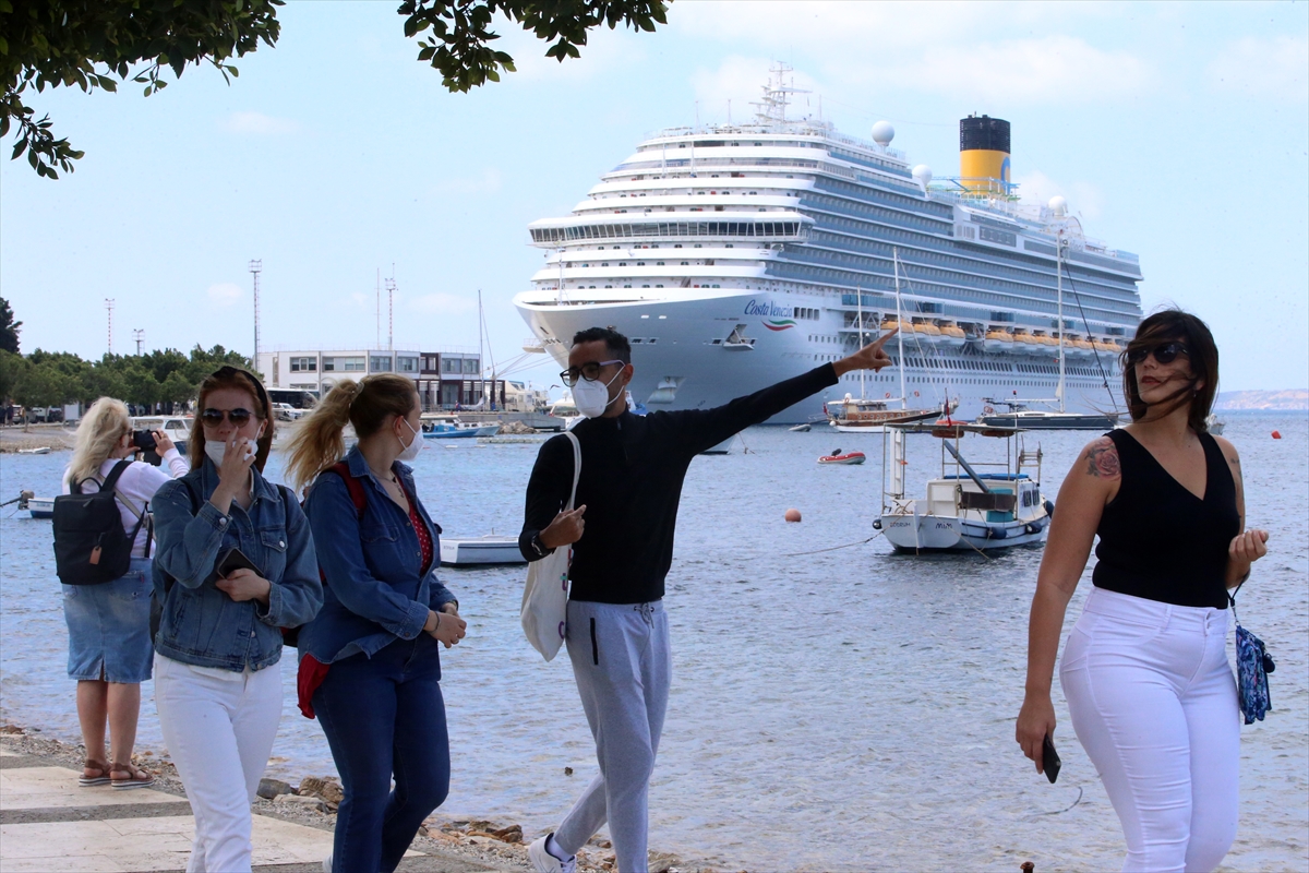 Gemideki Alman, Rus ve İtalyan ağırlıktaki turistler, çıkış işlemlerinin ardından kendilerini bekleyen tur otobüsleri ve gezi tekneleriyle kentteki tarihi ve turistik yerleri görmek için limandan ayrıldı.