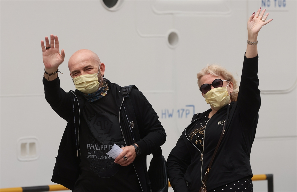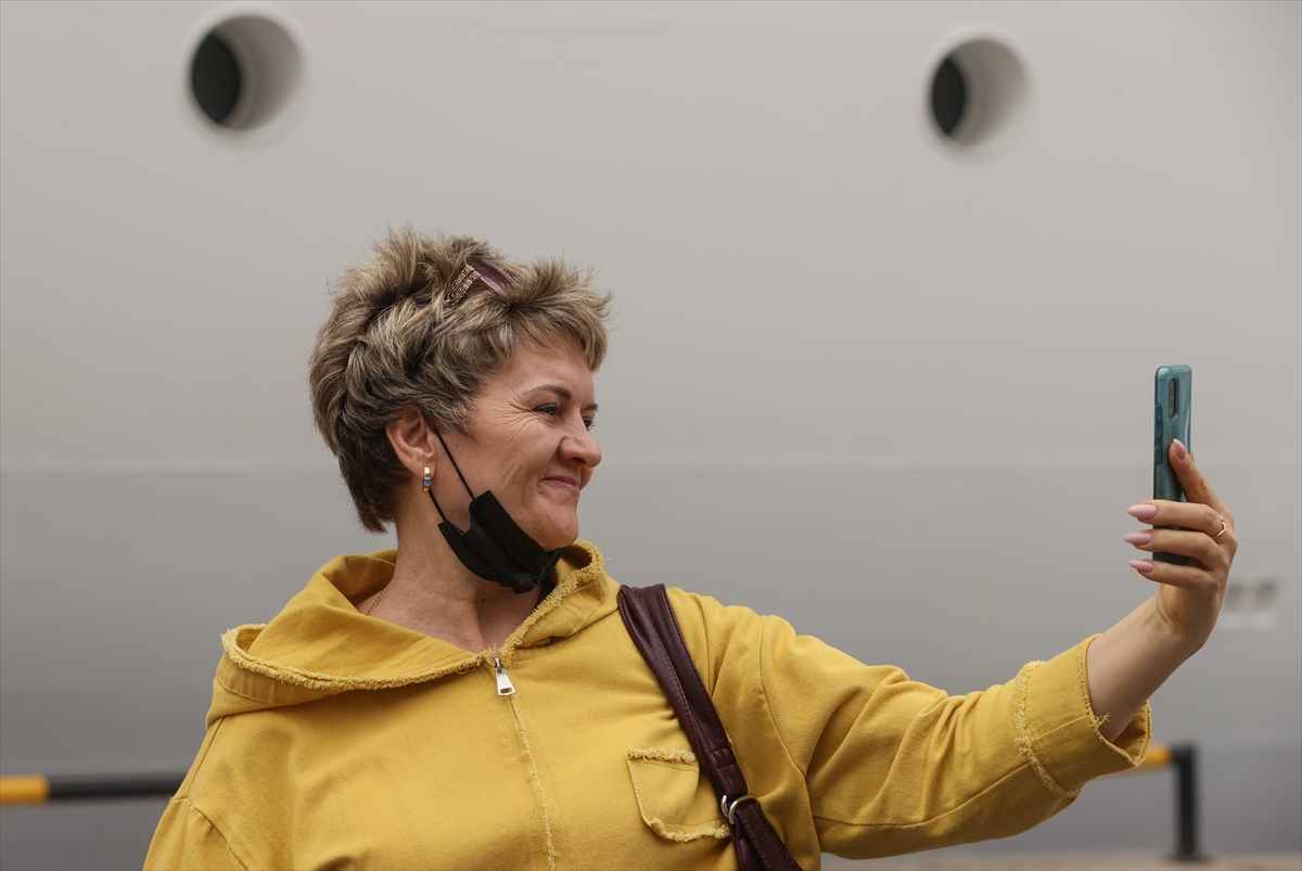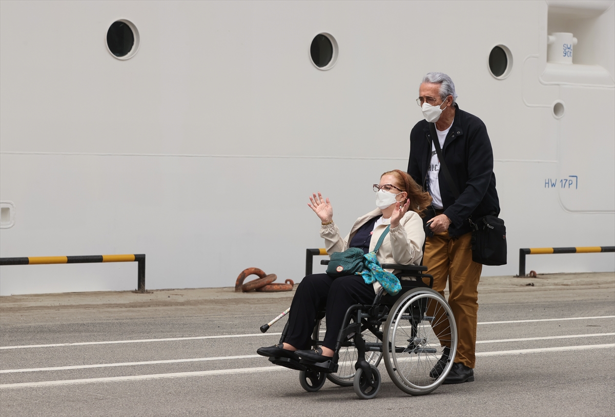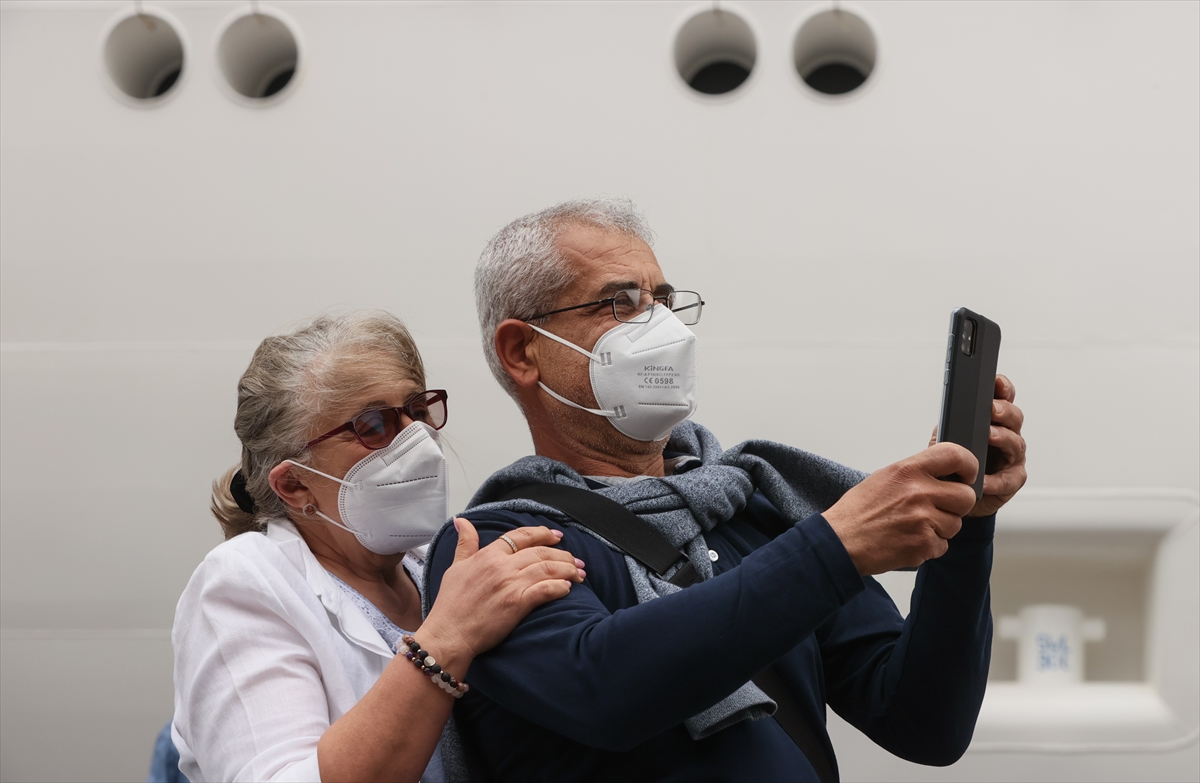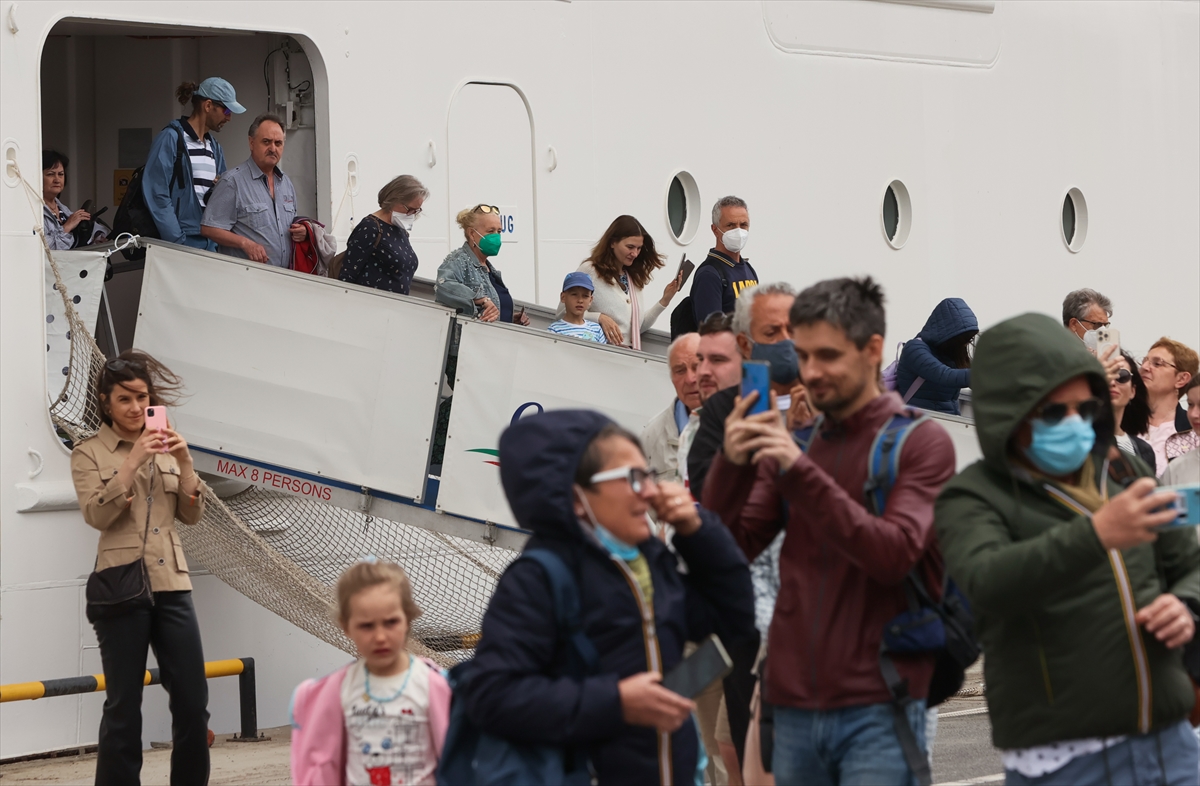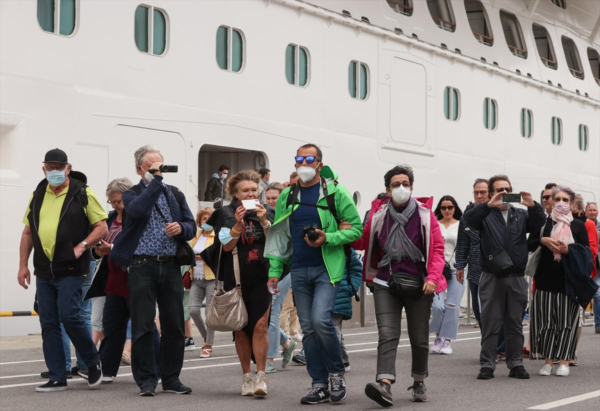 Turistler, çıkış işlemlerinin ardından kendilerini bekleyen tur otobüsleriyle kentteki tarihi ve turistik yerleri görmek için limandan ayrıldı.