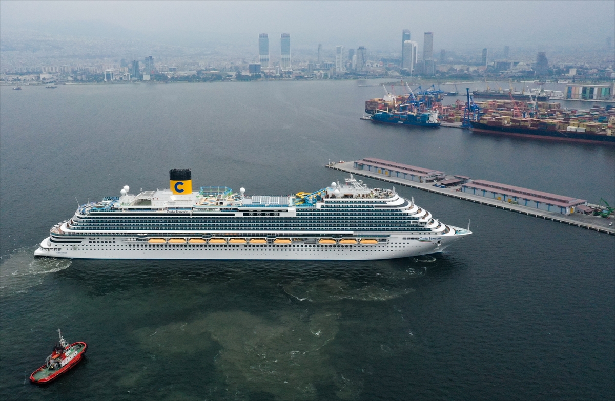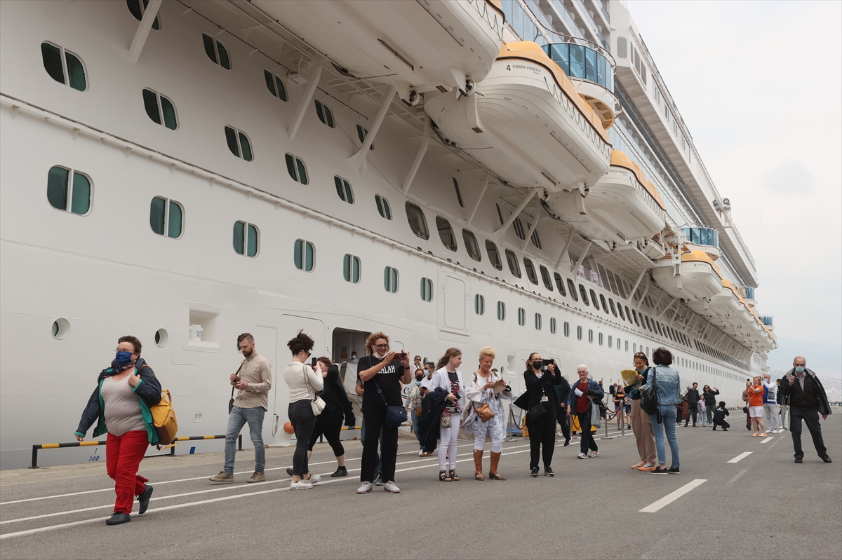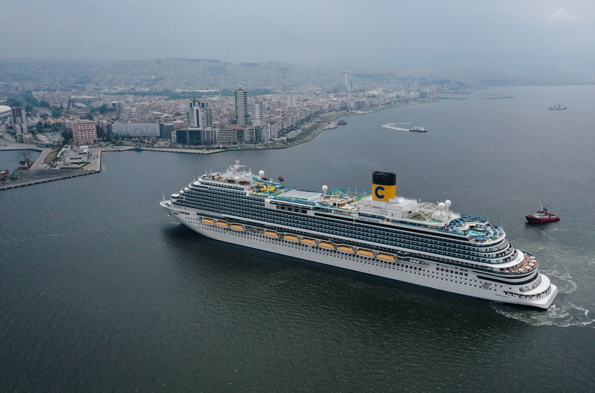 İZMİR (AA) – İstanbul'dan 1200 turistle yola çıkan İtalya bandıralı kruvaziyer Costa Venezia, İzmir Limanı'na geldi.