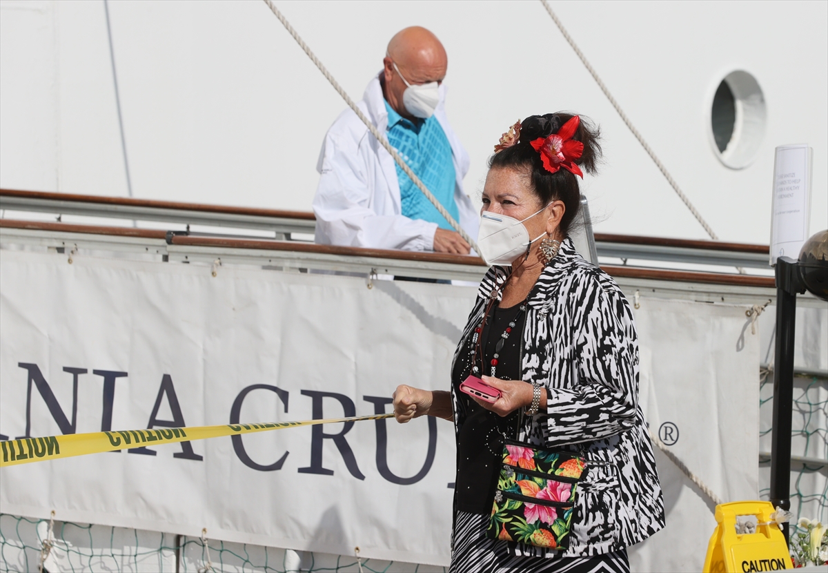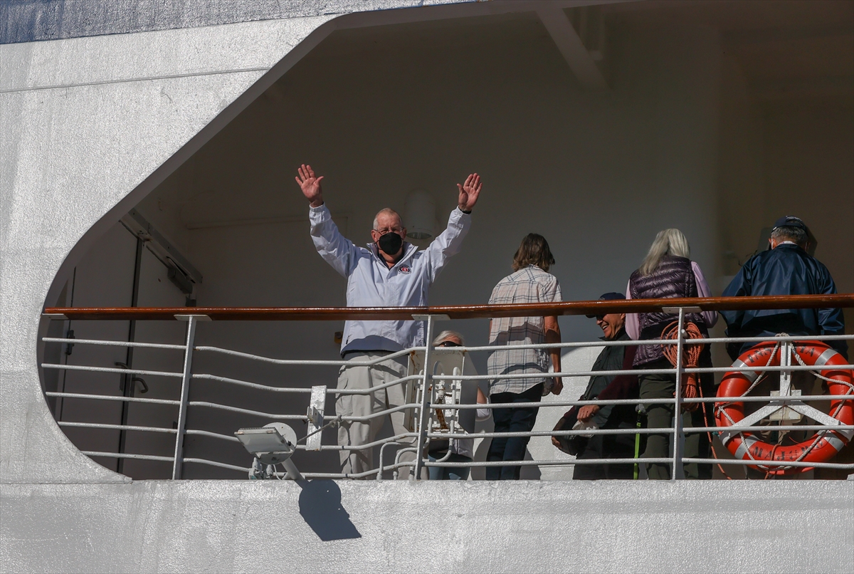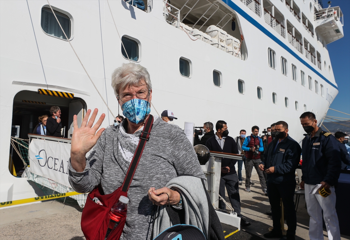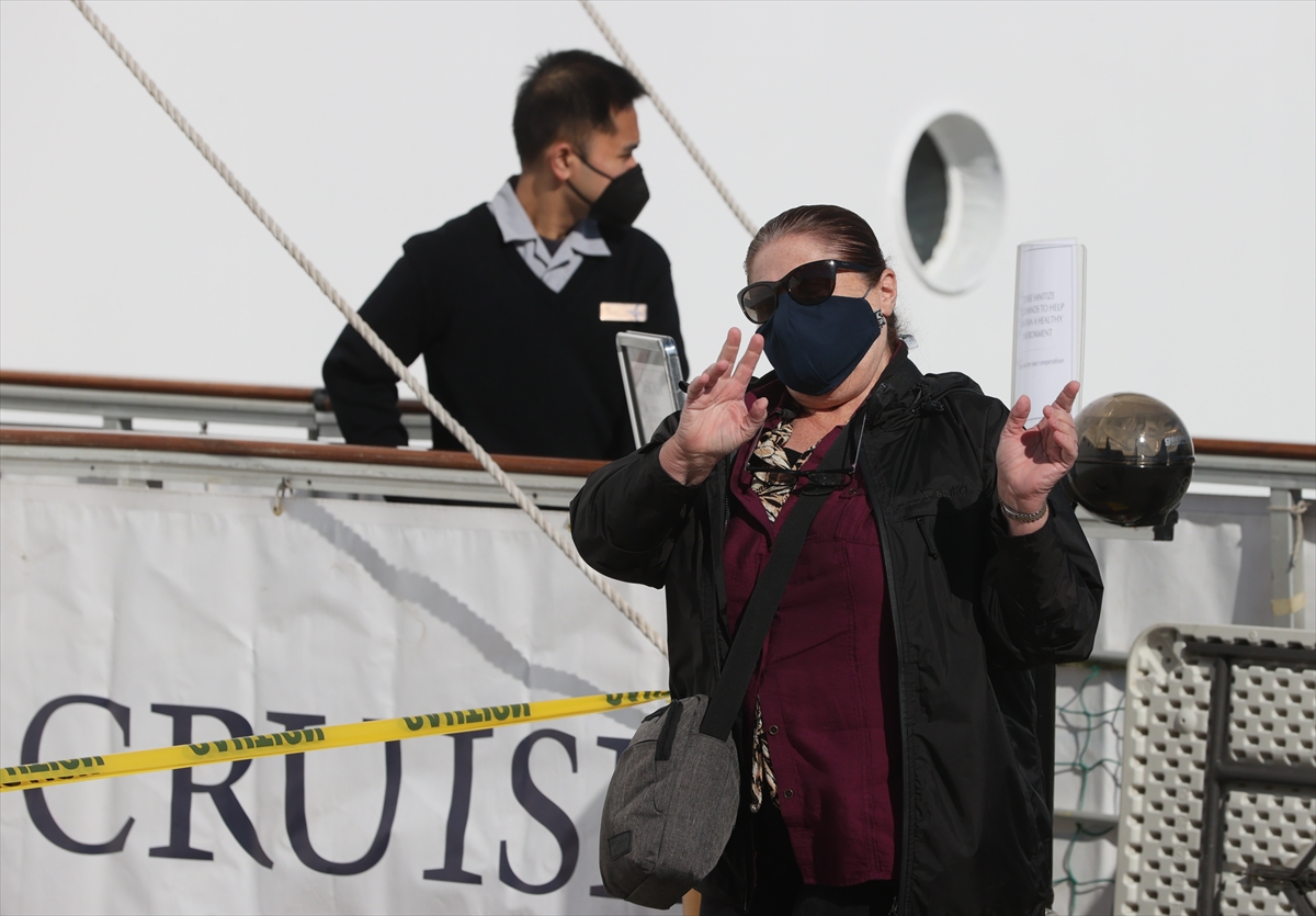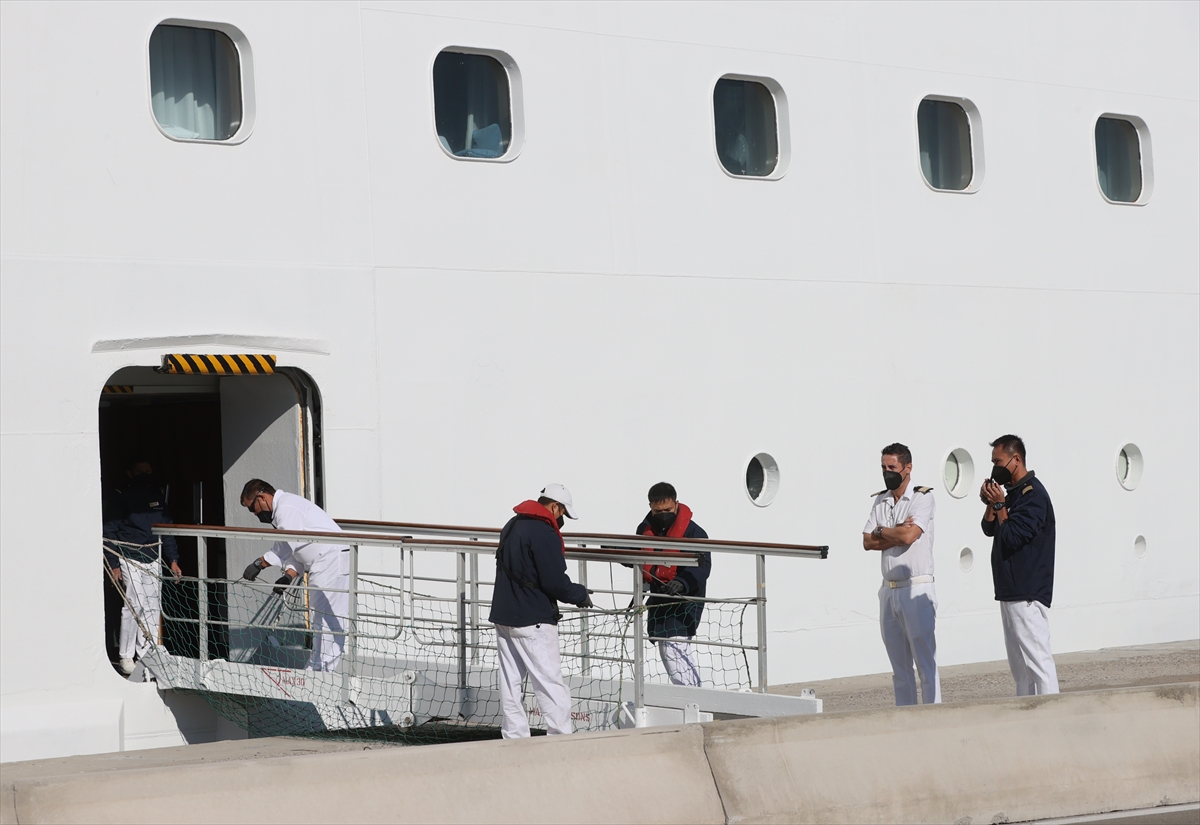 Gemideki yolcular, Kovid-19 salgını tedbirleri kapsamında ateşleri ölçüldükten sonra gemiden ayrıldı.