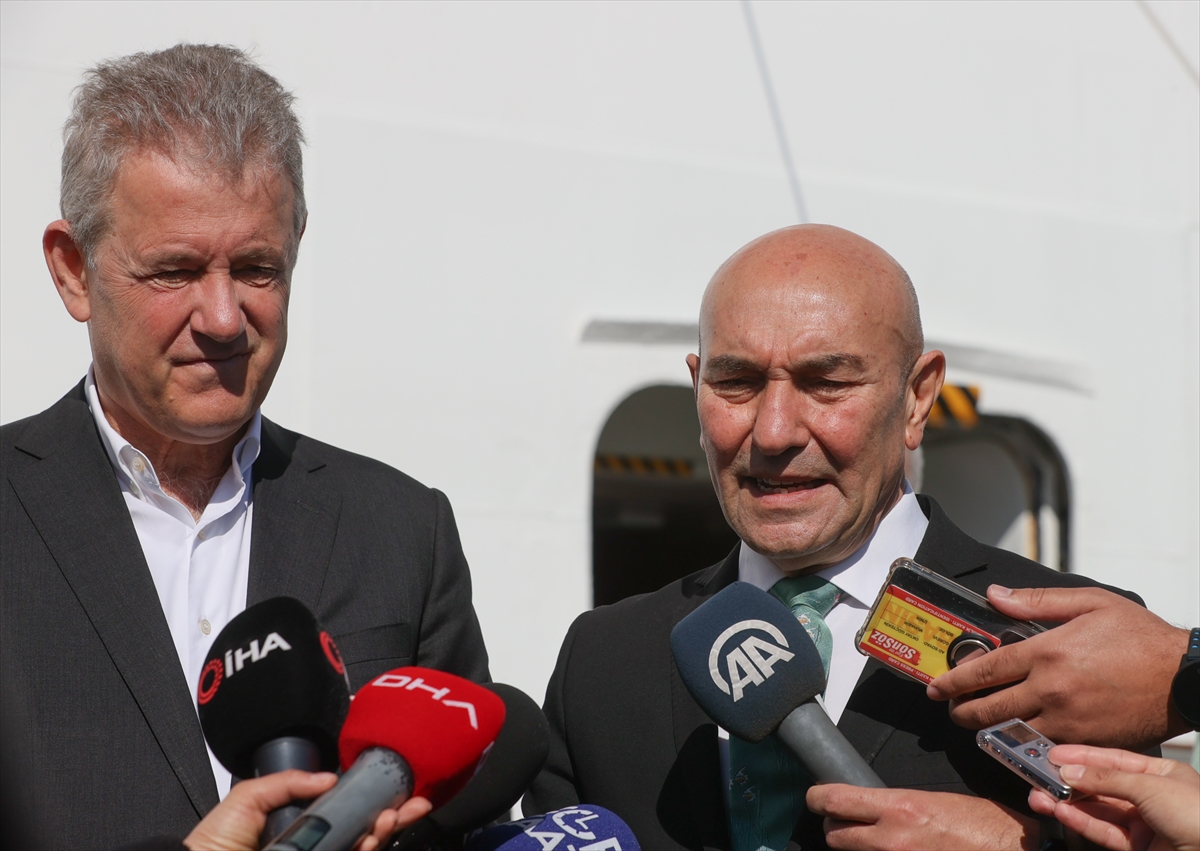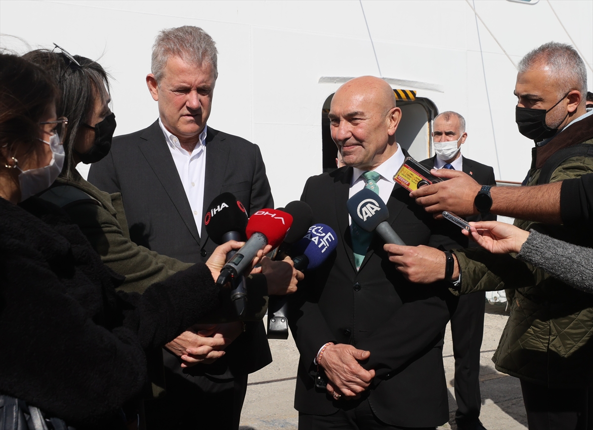 Yolcuları limanda İzmir Büyükşehir Belediye Başkanı Tunç Soyer, Vali Yardımcısı Hikmet Dengeşik, İzmir Ticaret Odası Başkanı Mahmut Özgener karşıladı.