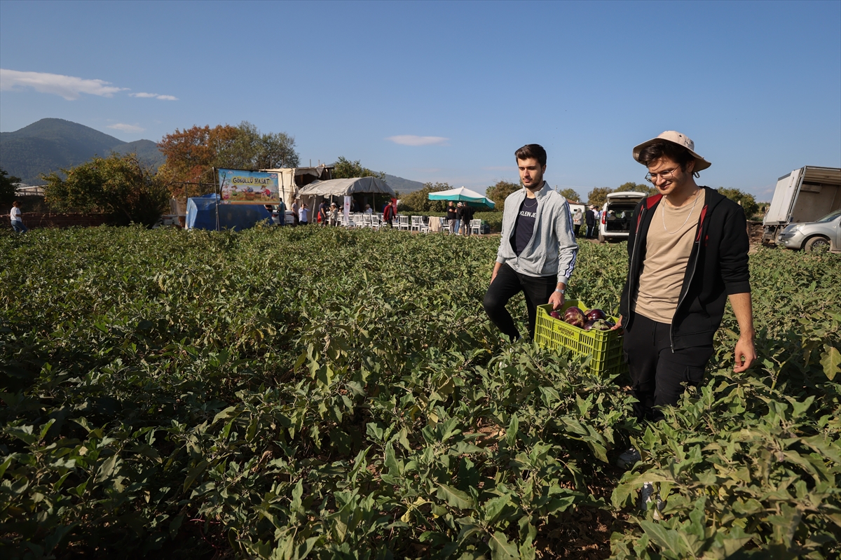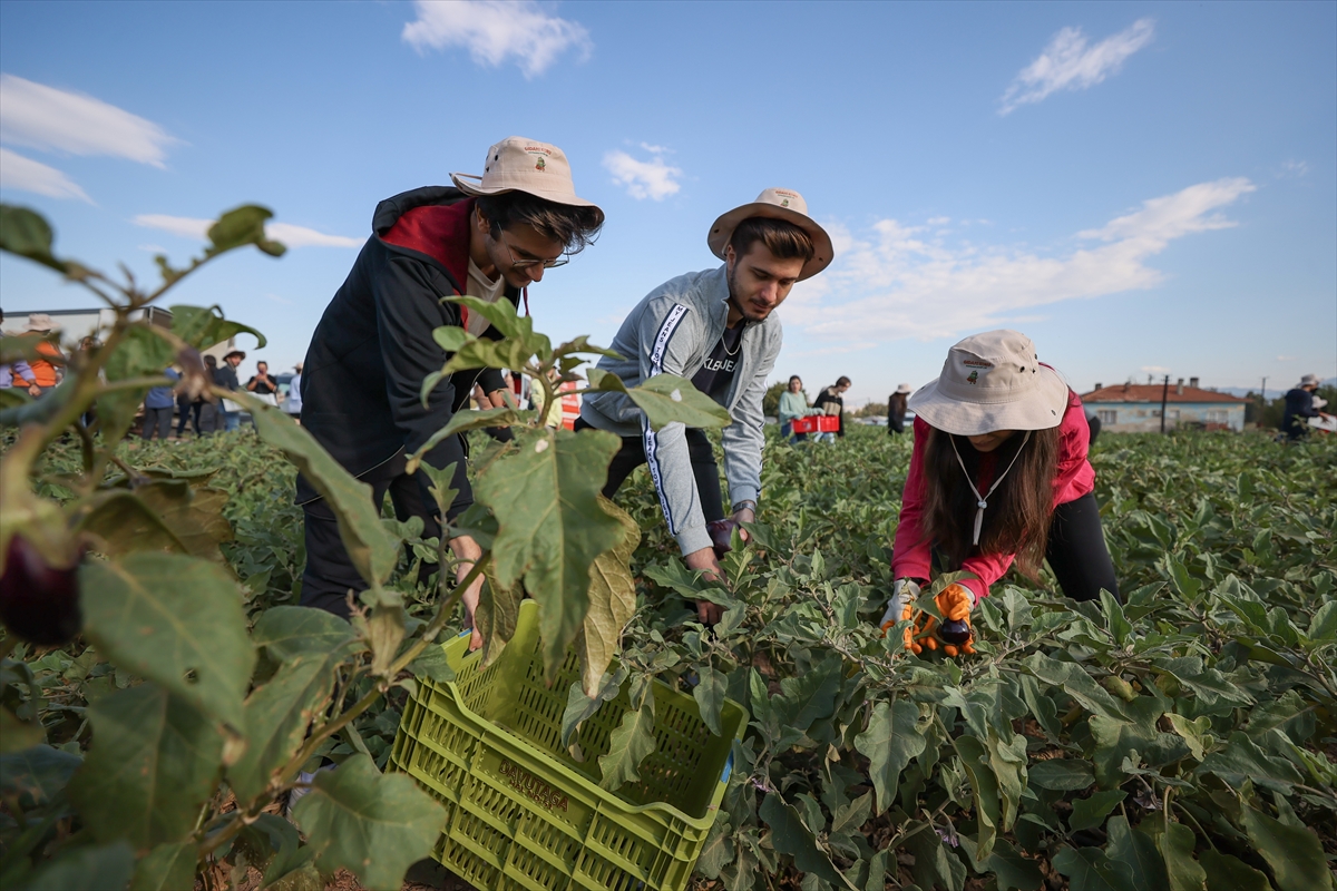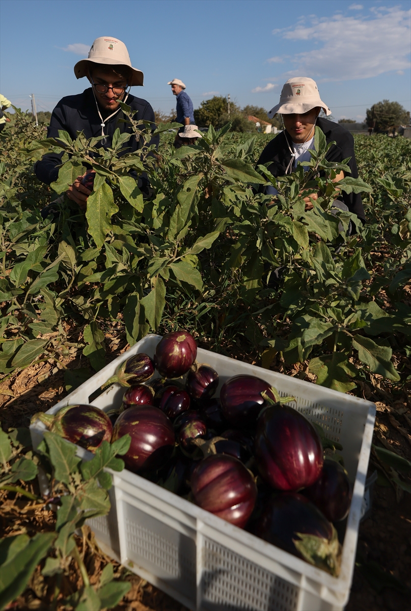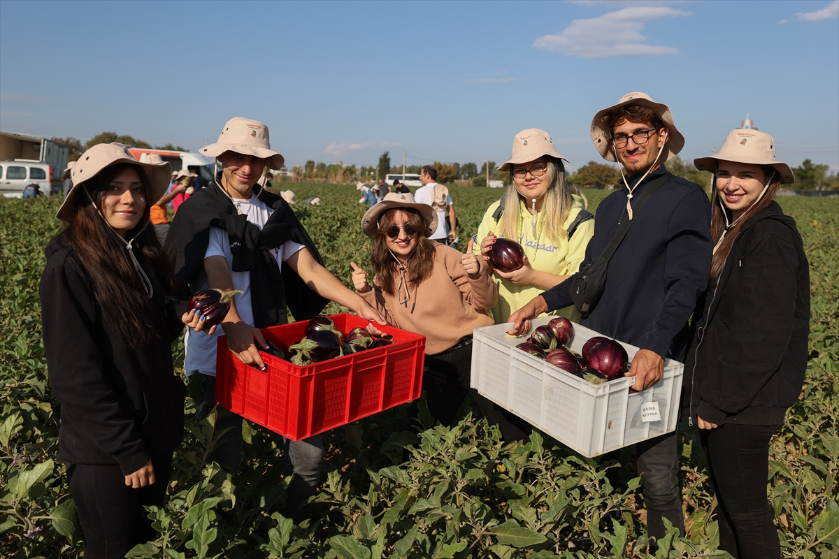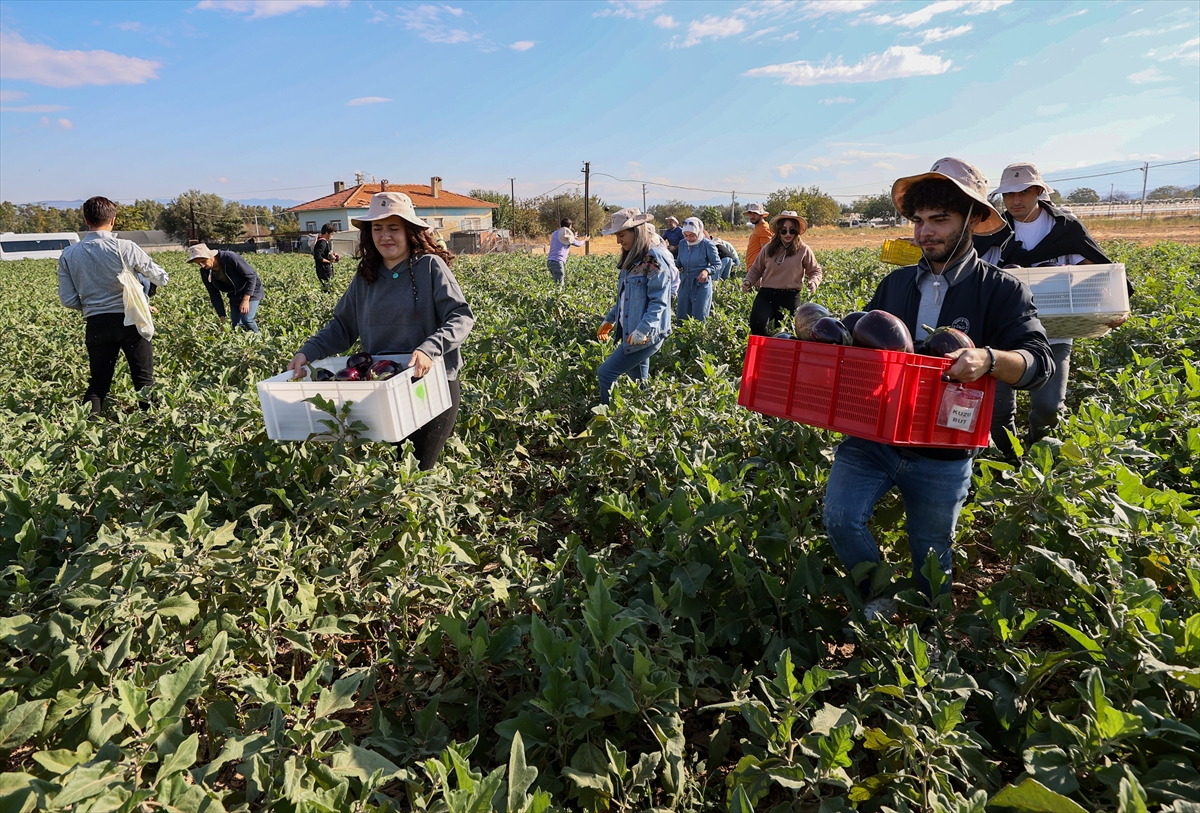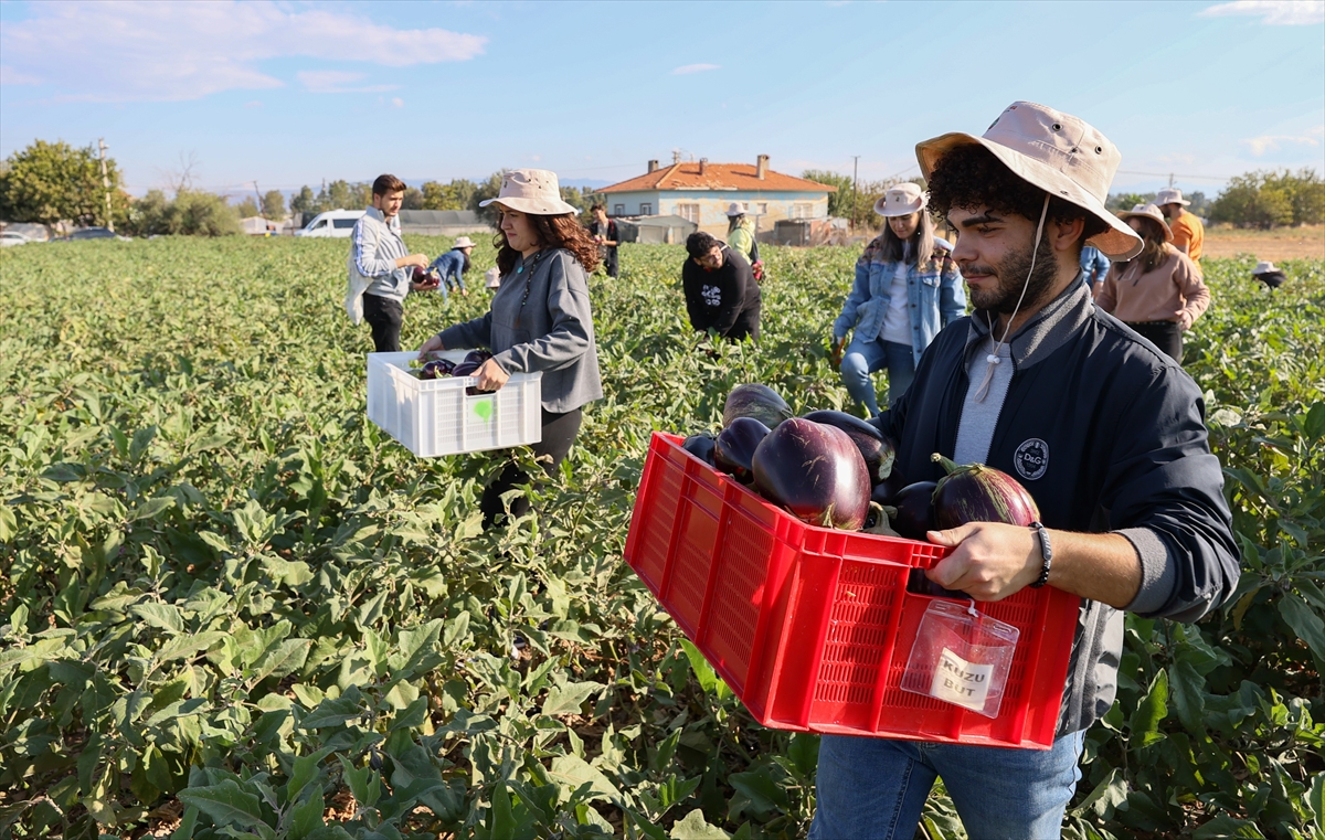 Öğrenciler, maliyeti karşılamayacağı için toplanmayan yaklaşık 1 ton patlıcanı hasat etti.