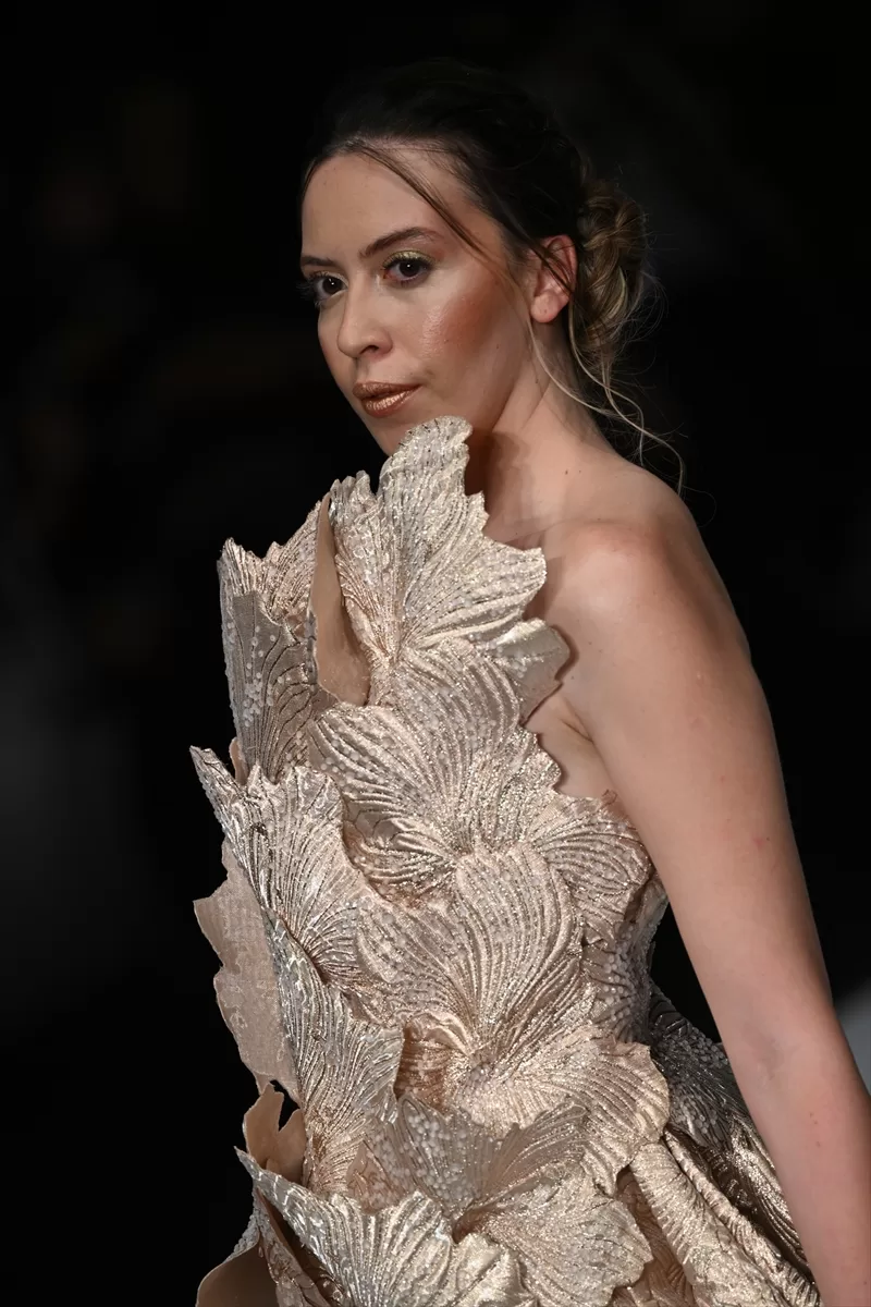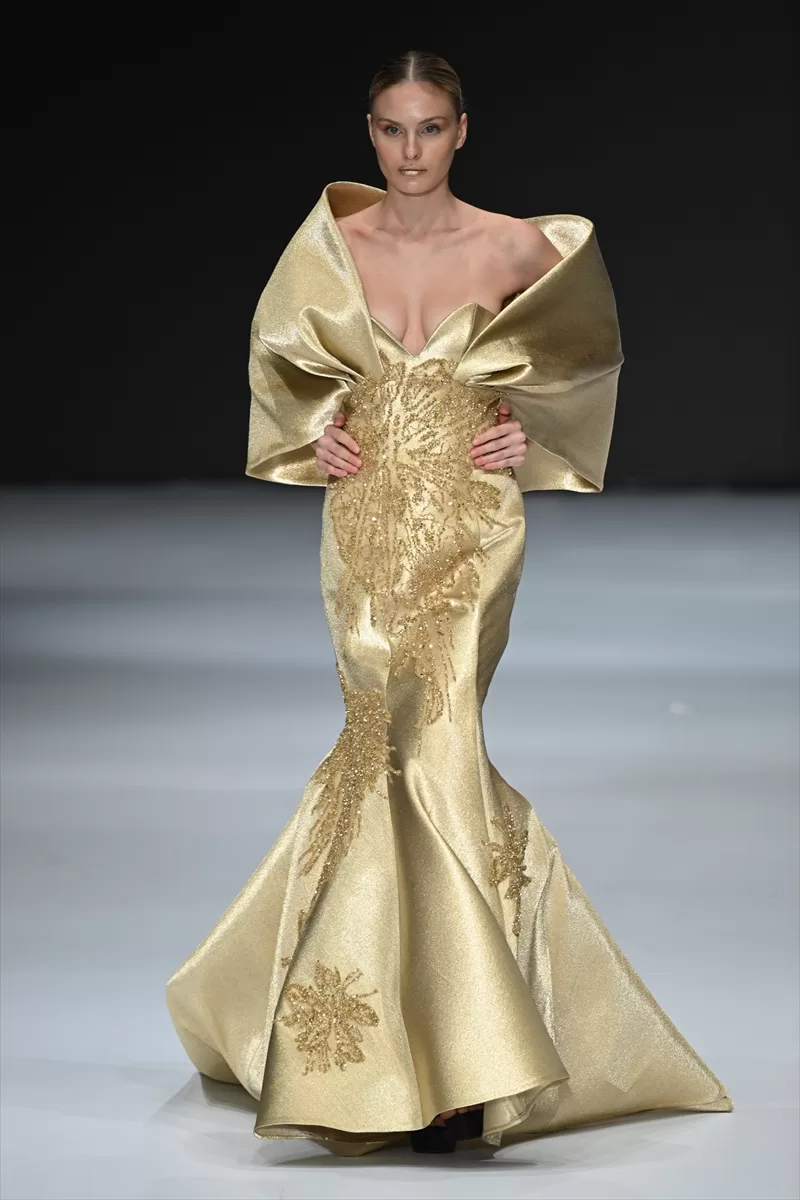 Fuarizmir'de dün başlayan fuarın galasında bir firmanın tasarladığı 2024 abiye kreasyonu, 1990'lı yılların ünlü mankenlerinin de görev aldığı defileyle tanıtıldı.