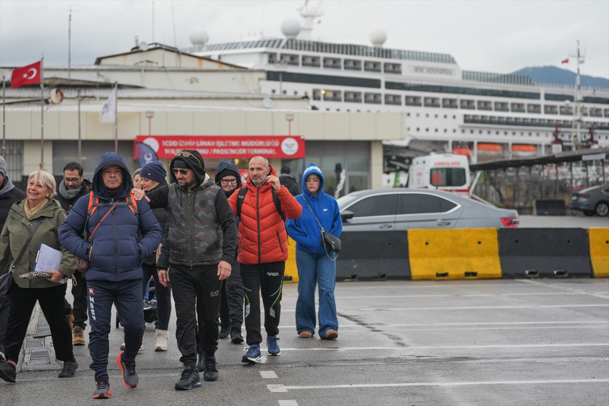 Turistler şehir merkezinin yanı sıra Bergama ve Efes antik kentleri ile Meryem Ana Evi'ni ziyaret için limandan ayrıldı.