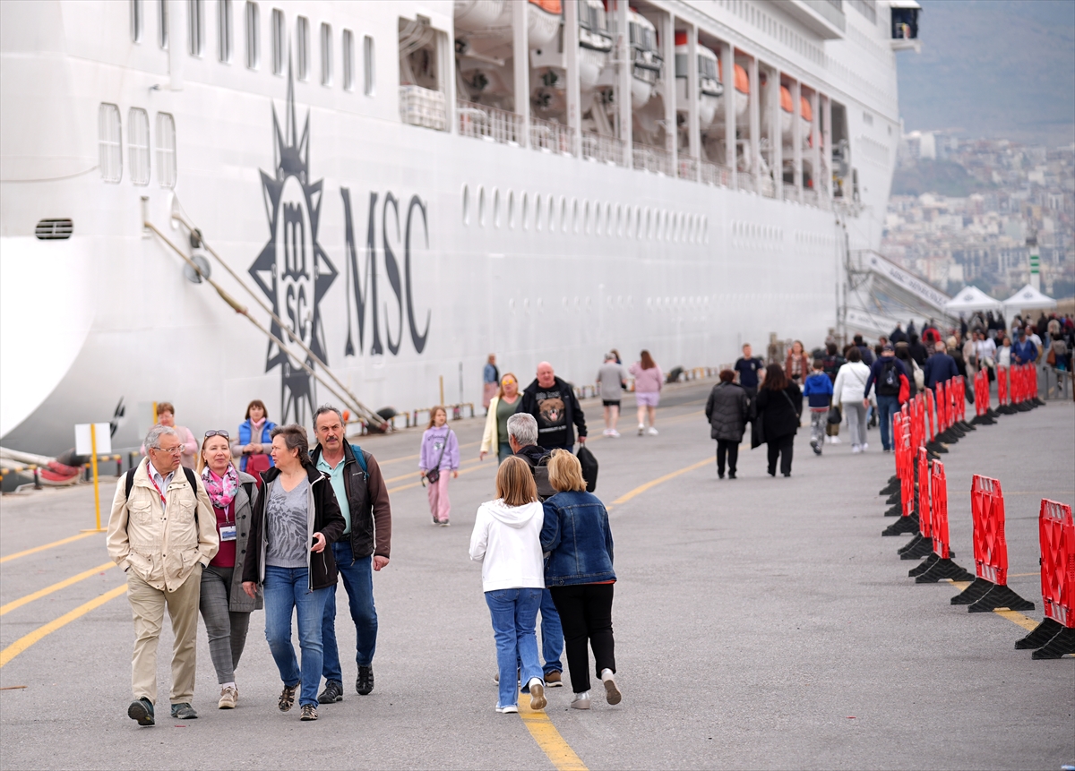 Gemilerdeki çoğunluğu Rus, İtalyan ve İspanyol turistler, kent merkezindeki turistik alanların yanı sıra Bergama Antik Kenti'ni ziyaret etti.