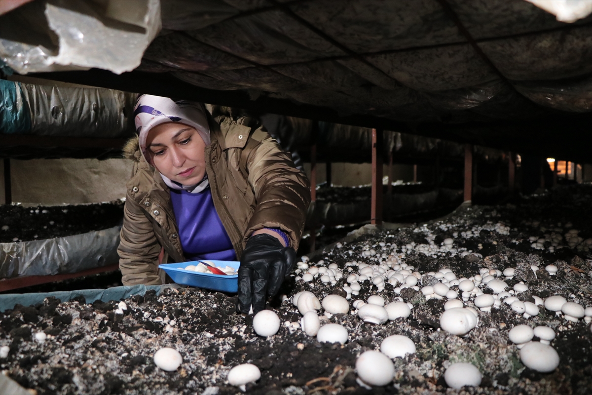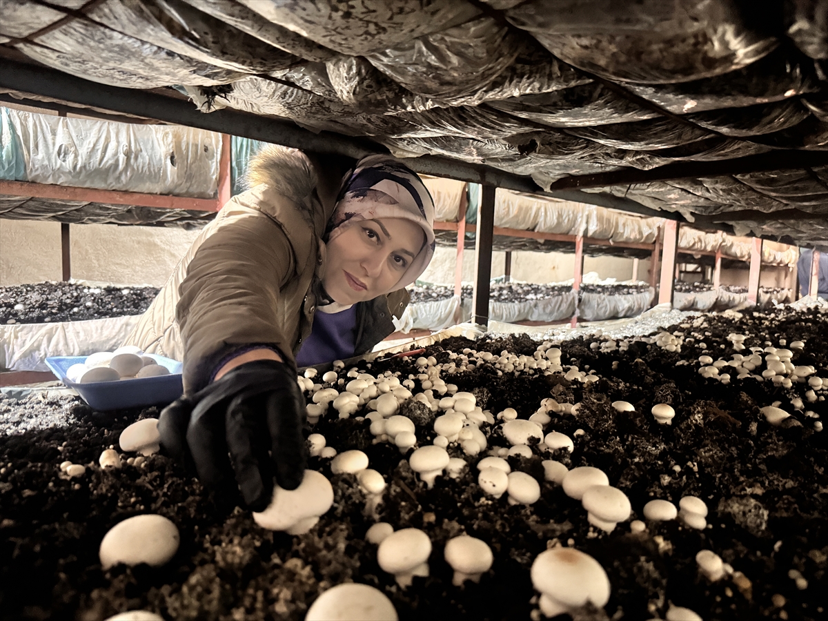 ERZURUM (AA) – İLHAMİ ERKILIÇ – Erzurum'un Pasinler ilçesinde devlet desteğiyle tesis kuran 3 çocuk annesi Nurcan Aktaş, istihdam ettiği 10 kişi ile mantar üretiyor.