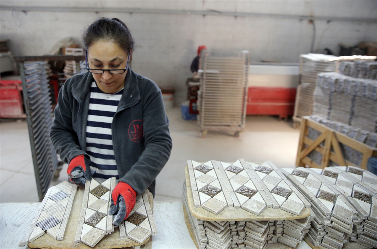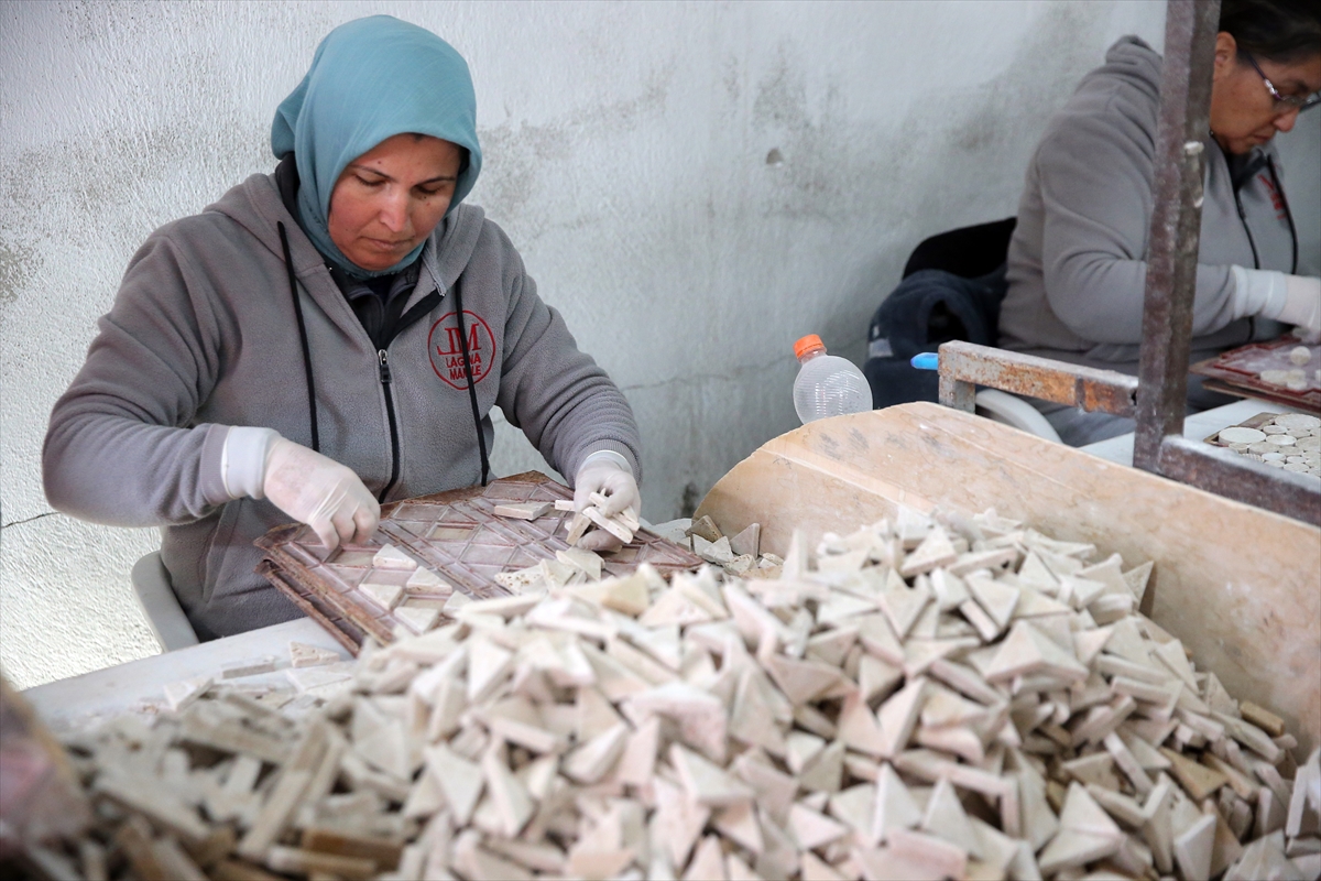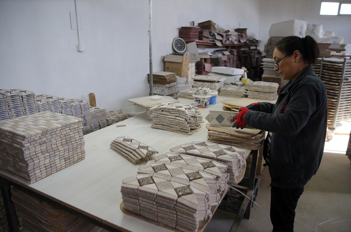 Menteşe ilçesi Yerkesik Mahallesi'nde,18 yıldır doğal taş grubu traverten ve mermerden mozaik üzerine faaliyet gösteren firmanın çalışanlarının yüzde 90'ını kadınlar oluşturuyor.