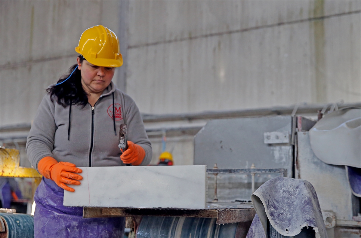 MUĞLA (AA) – OSMAN AKÇA – Sanayi sektörünün ağır, gürültülü ve tozlu iş kolu olan mermer fabrikalarında çalışan kadınlar işlerini titizlikle yapıyor.