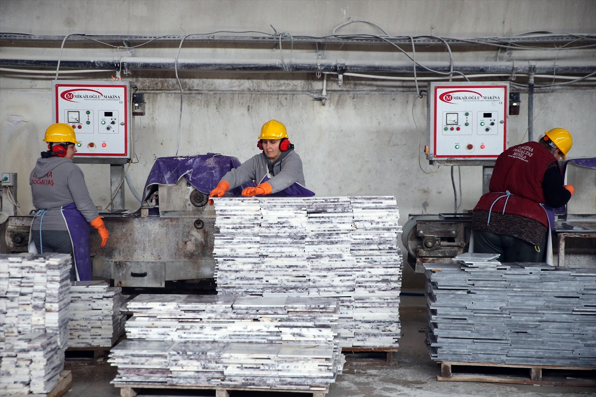 Mermer yıkama, ayıklama, temizleme, paketleme ve mozaik işlerinde çalışan kadınlar, sanayi sektöründe kendini gösteriyor.