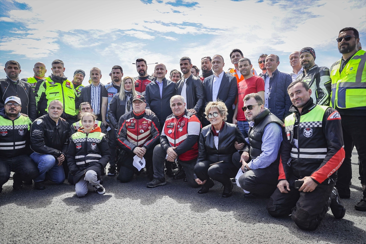 Kuzey Marmara Otoyolu Kınalı mevkisinde yapımına devan eden motorcu dostu güvenlik bariyerlerini incelen Karaismailoğlu'na, Kenan Sofuoğlu ve çok sayıda platform üyesi eşlik etti.