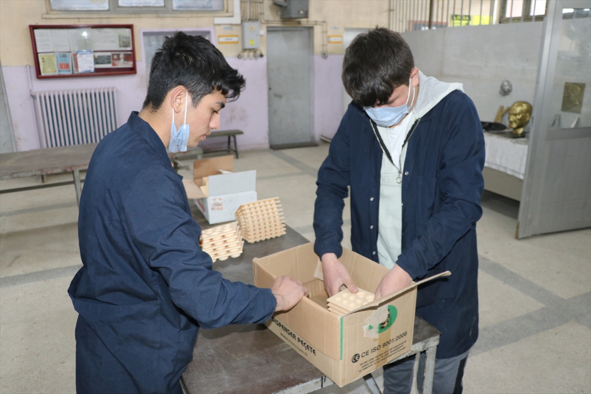 Dışarıdan aldıkları işlerle öğrencilerin harçlıklarını kazanabildiğini anlatan Kılıç, "Milli Eğitim Bakanlığımızdan ve ildeki işletmelerden ön sipariş aldık. Çok yakın zamanda tam kapasiteyle makinemizi çalıştıracağız." diye konuştu.