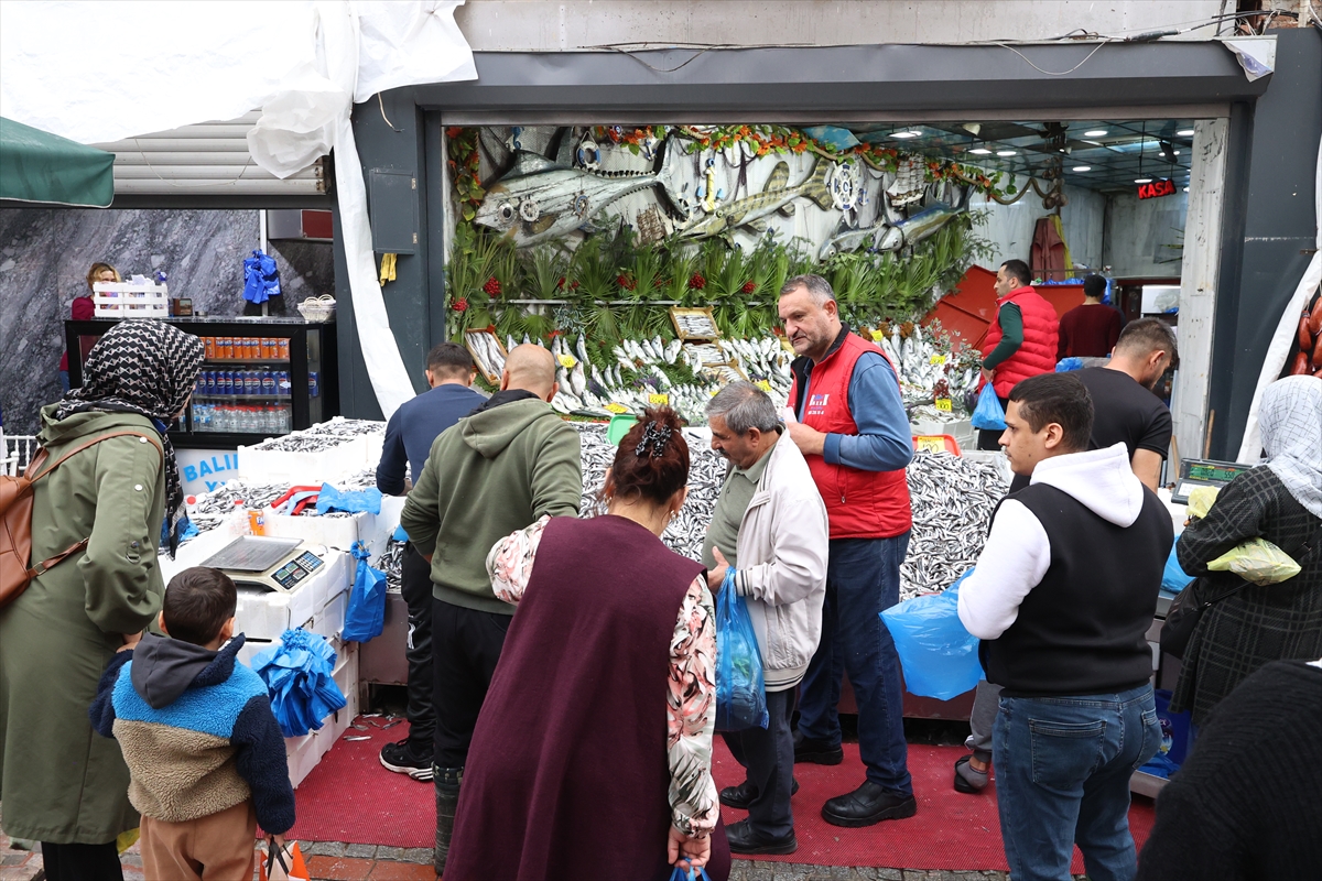 Edirne Balıkpazarı'nda sabah saatlerinden itibaren hamsi almak isteyen vatandaşlar tezgahlarda yoğunluk oluşturdu.