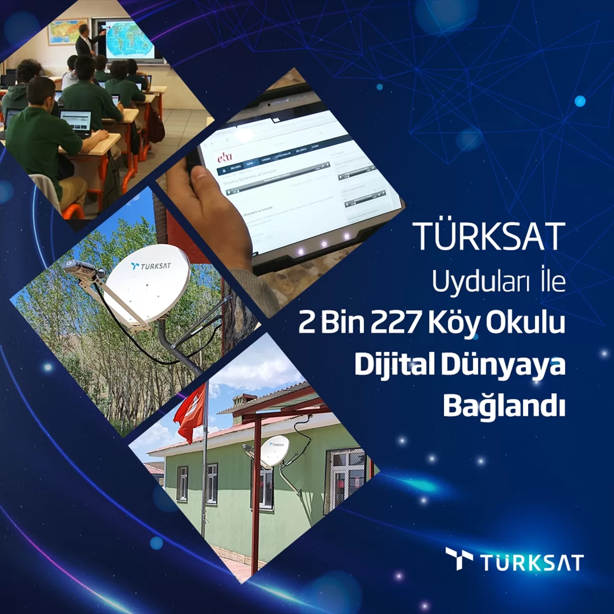 Özellikle sarp arazilerde bulunan ve karasal bağlantının bulunmadığı köy okullarının internete kavuşturulması amacıyla kuruluş tarafından Türksat VSAT (Küçük Çaplı Uydu İstasyonu) anteni kurulumları yapılıyor. Bu kapsamda 2021 yılında 1366 köy okuluna internet bağlandı. Geçen yıl bu sayı 1817 olurken, bu yıl da yüzde 22,6 artışla 2 bin 227'ye yükseldi.
