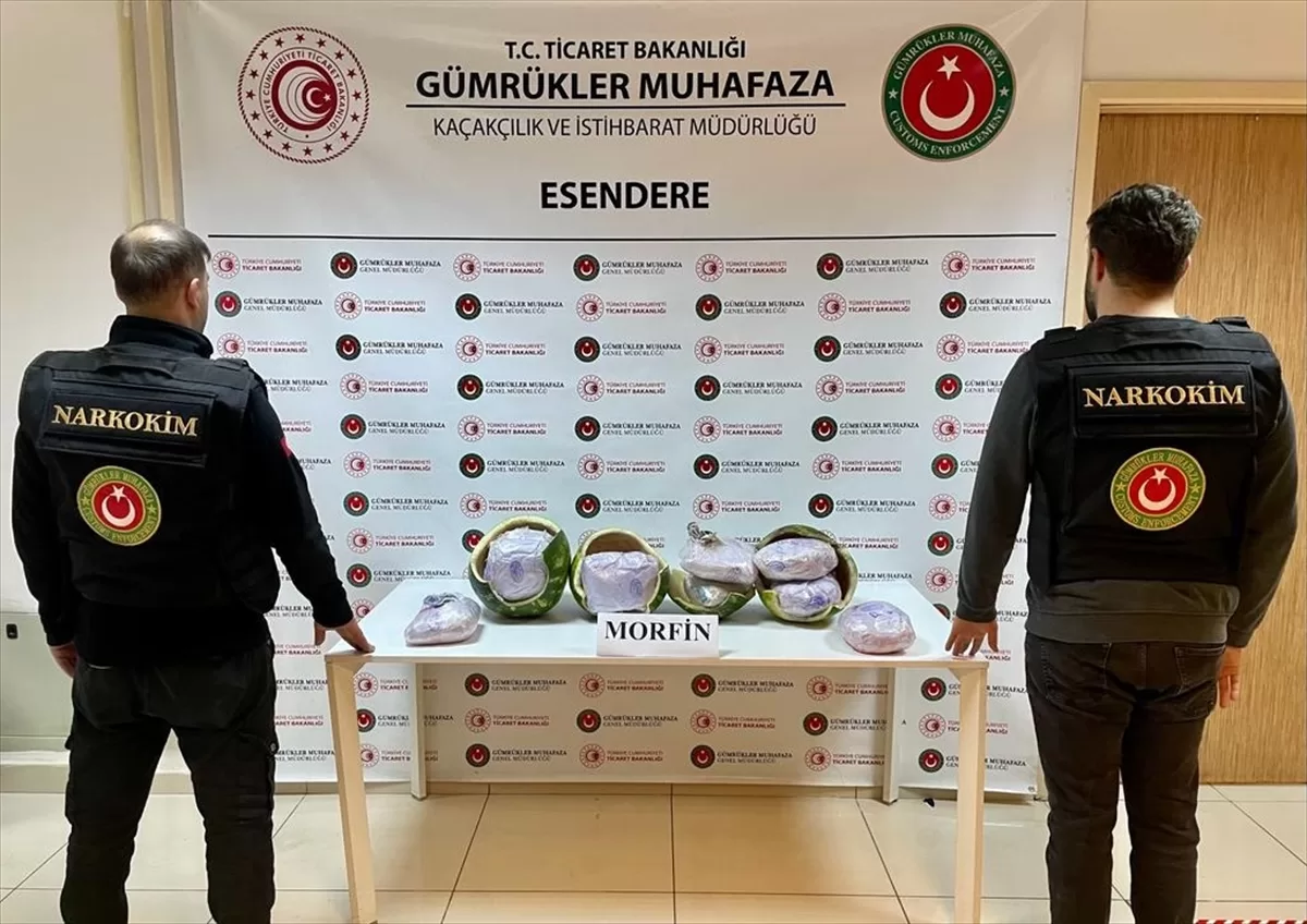 ANKARA (AA) – Ticaret Bakanlığı Gümrük Muhafaza ekiplerince, Esendere Gümrük Kapısı'nda gerçekleştirilen operasyonda karpuz içine gizlenmiş 12 kilogram morfine el konuldu.