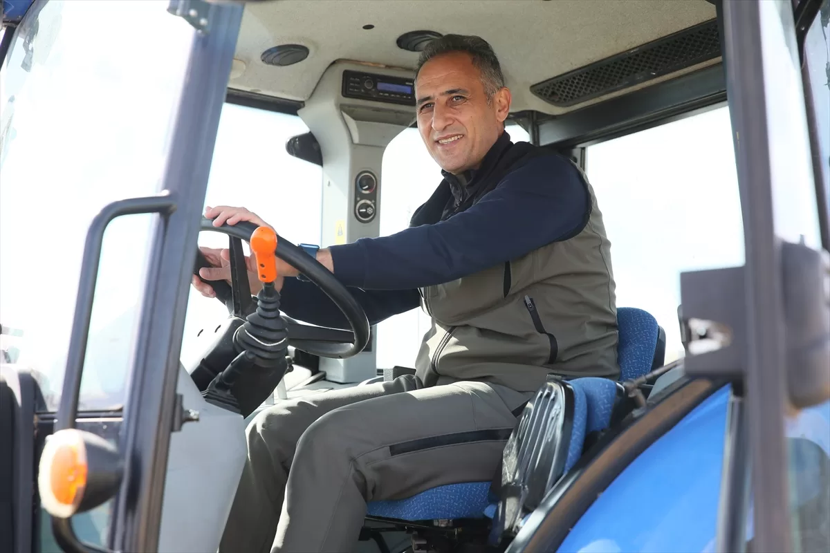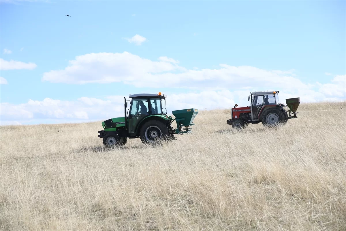 Konuşmanın ardından Aydın, traktöre binerek meraya gübre serpti.