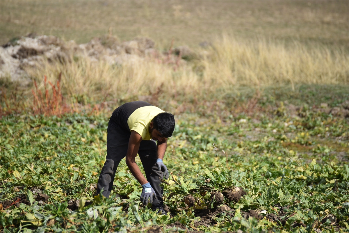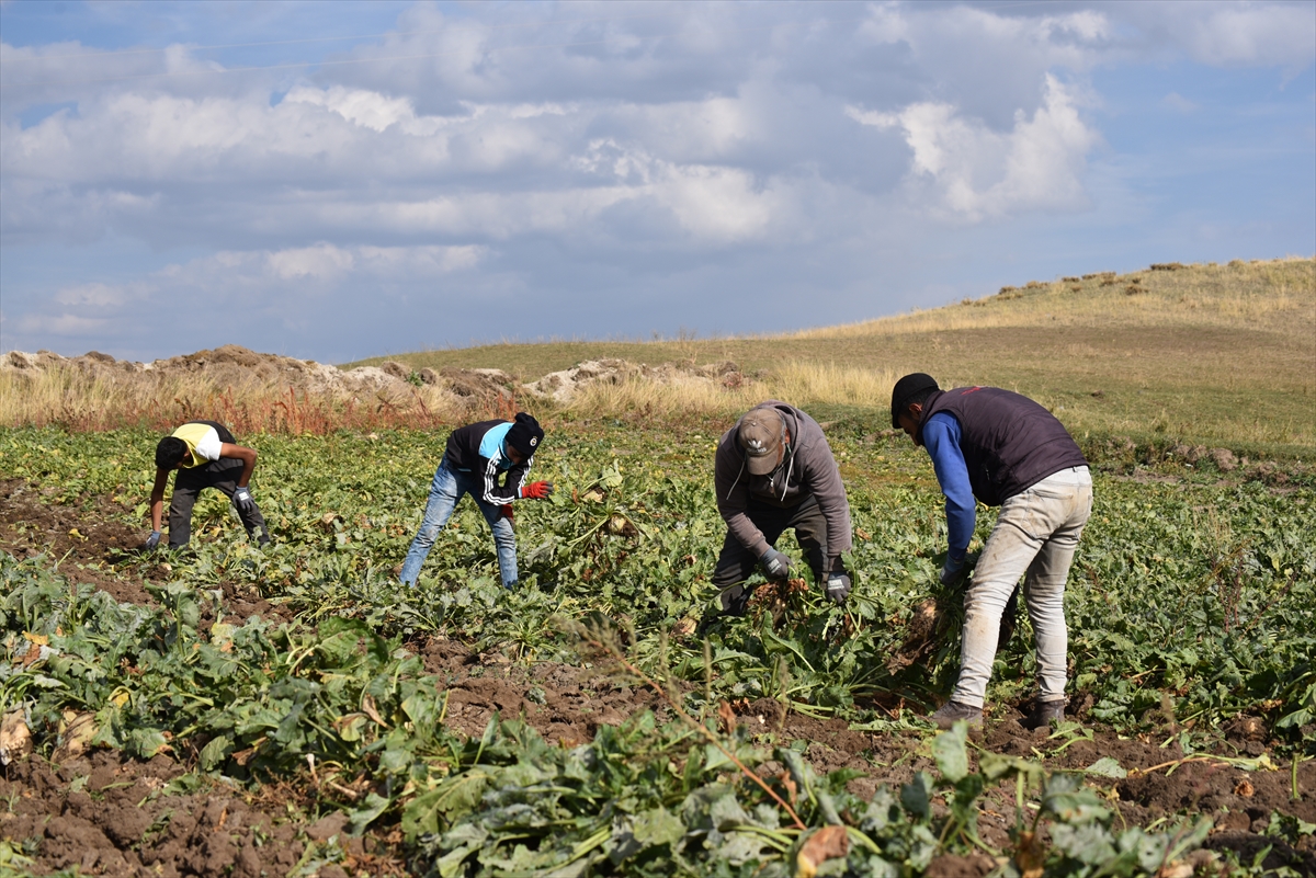 Tarımın yaygın yapıldığı Arpaçay ve Akyaka ilçelerindeki çiftçiler, büyük emeklerle yetiştirdikleri pancarın hasadını yapmaya devam ediyor.