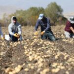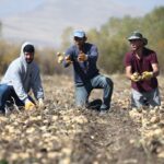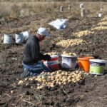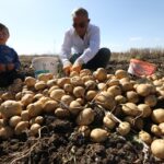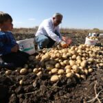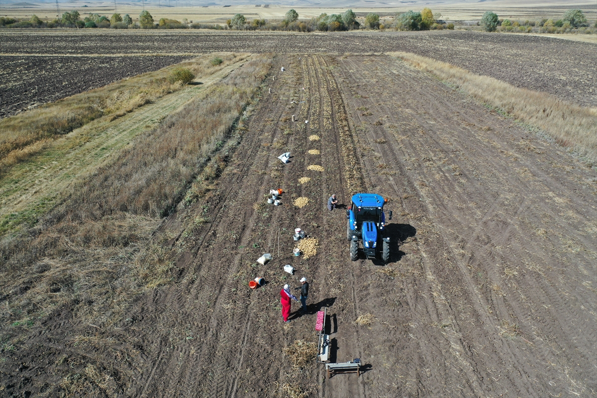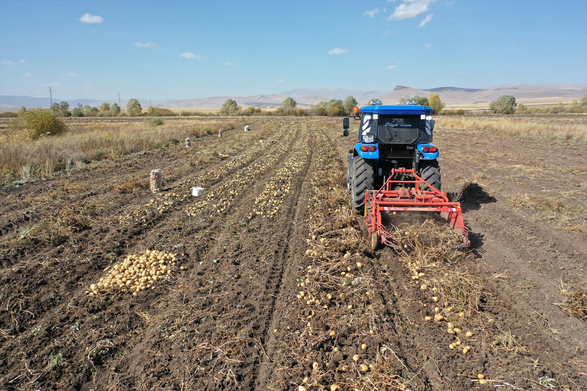 KARS (AA) – CÜNEYT ÇELİK – Hava sıcaklığının düştüğü Kars'ın Selim ilçesinde, köylüler beyaz patatesi toprak donmadan imece usulü hasat ediyor.