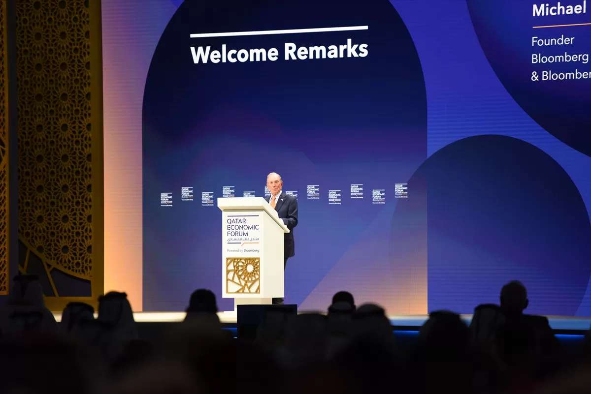 Doha’da Bloomberg Media Group’un işbirliğiyle düzenlenen forumun açılışında Katar Emiri Şeyh Temim bin Hamed Al Sani de yer aldı.