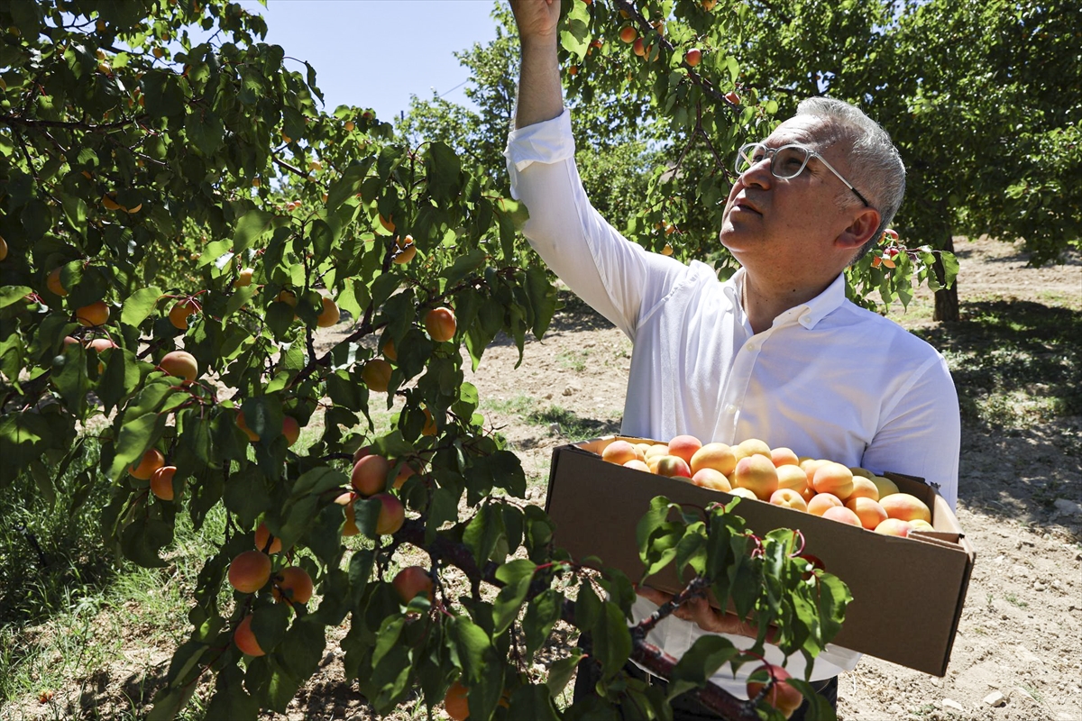 Köydeki 200 dönümlük kayısı bahçesini gezen Şimşek, hasatla ilgili İl Tarım ve Orman Müdürü Seyit Yıldız'dan bilgi aldı.