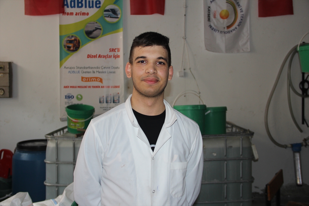 Arif Molu Mesleki ve Teknik Anadolu Lisesi Kimya Teknolojisi 10. sınıf öğrencisi Murat Aziz Nazlı da okulda dizel araçlar için AdBlue üreterek mesleki anlamda kendini geliştiğini söyledi.