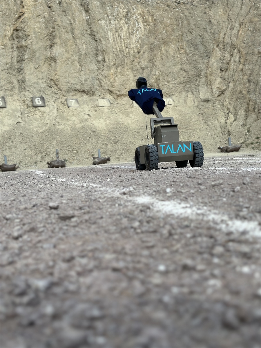 Otonom TALAN, çatışma ortamlarını gerçekçi şekilde simüle edebilmek için otonom hareket kabiliyetine sahip bir platform olarak tasarlandı. Sistemin çekirdeğinde, GPS, RTK, IMU ve pusula sensörlerinin oluşturduğu yüksek hassasiyetli konumlandırma ve engel tanıma altyapısı yer alıyor. Bu sayede sistem, operatör müdahalesi olmadan belirlenen eğitim senaryolarını tam bağımsız şekilde yürütebiliyor. Aynı anda birden fazla hedefin kontrolü, gerçek zamanlı izleme arayüzü ile mümkün hale geliyor.
